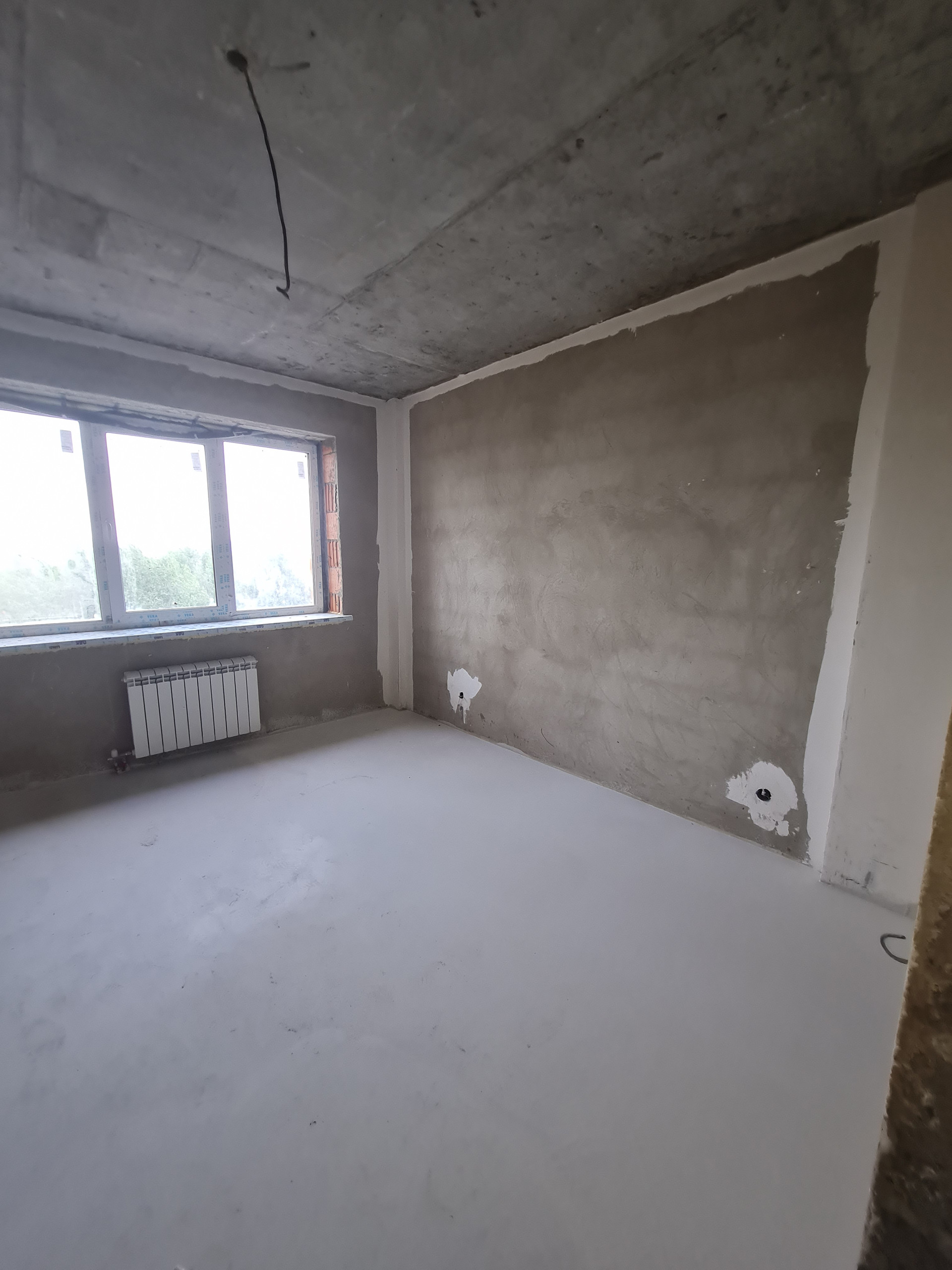 Очень просторная квартира! Кухня -15 кв.м, с лоджией, жилая комната 15 кв.м., большой коридор 22 кв.м. Можно сделать отличную двухкомнатную квартиру!  Сан.узел раздельный, кладовка. Электрика проведена, полы залиты, очень качественная стяжка. Стены отштукатурены. Осталась косметика на ваш вкус. Дом построен по специальному проекту, надежно, качественно! Вид из окна супер! Документы в полном порядке, никаких обременений, один взрослый собственник. Разумный торг уместен.