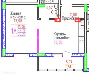 Площадь 35,19 м2