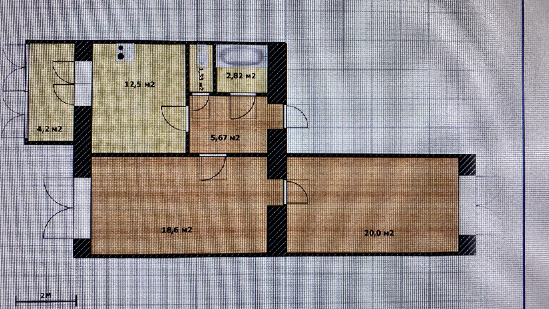 Жилая площадь 38.8 м2