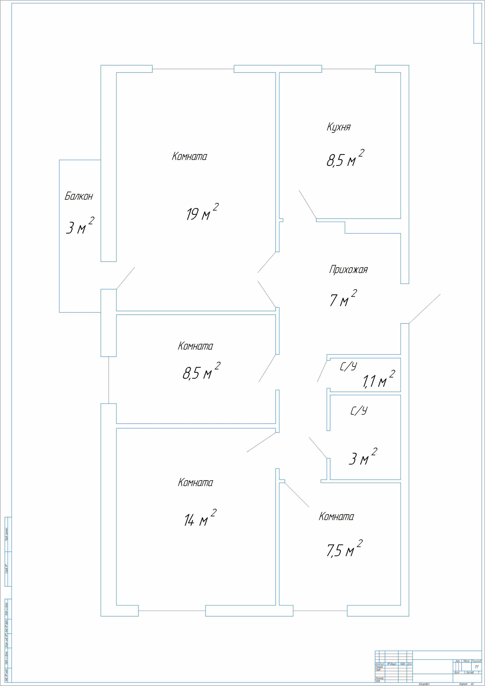 Общая площадь 69.4 м2