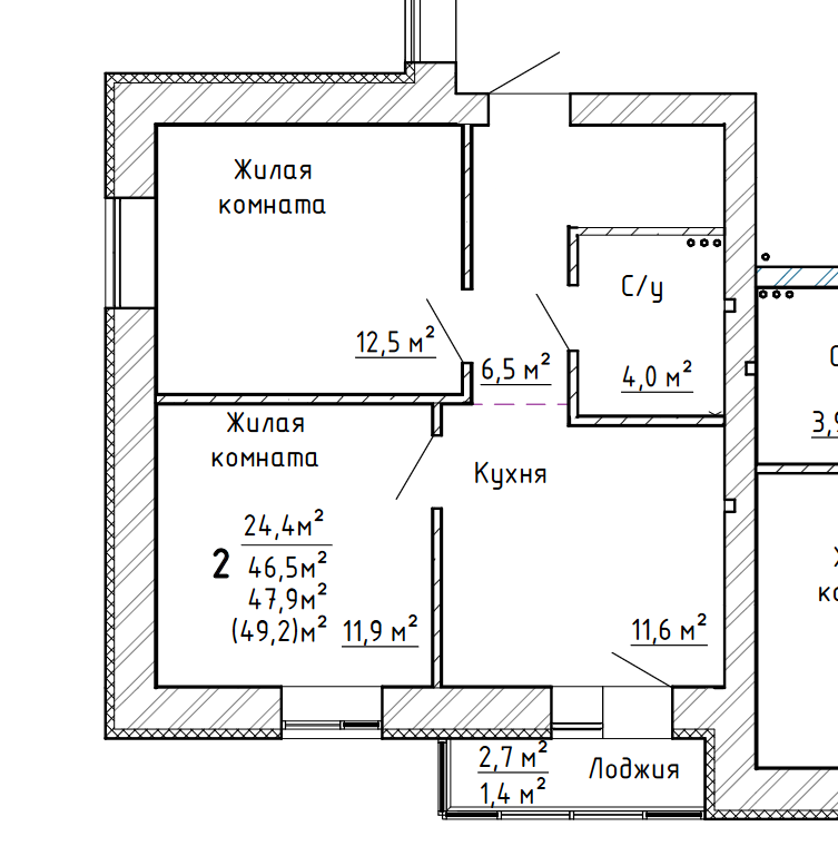 Общая площадь 47.9 м2
