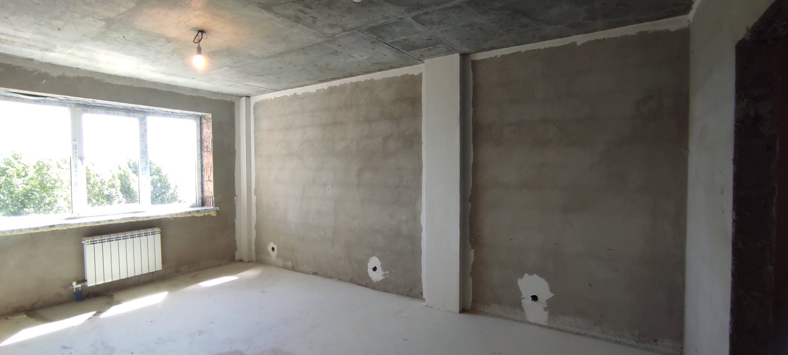 В квартире выполнена разводка электричества, установлены счётчики горячей/холодной воды и электроэнергии.