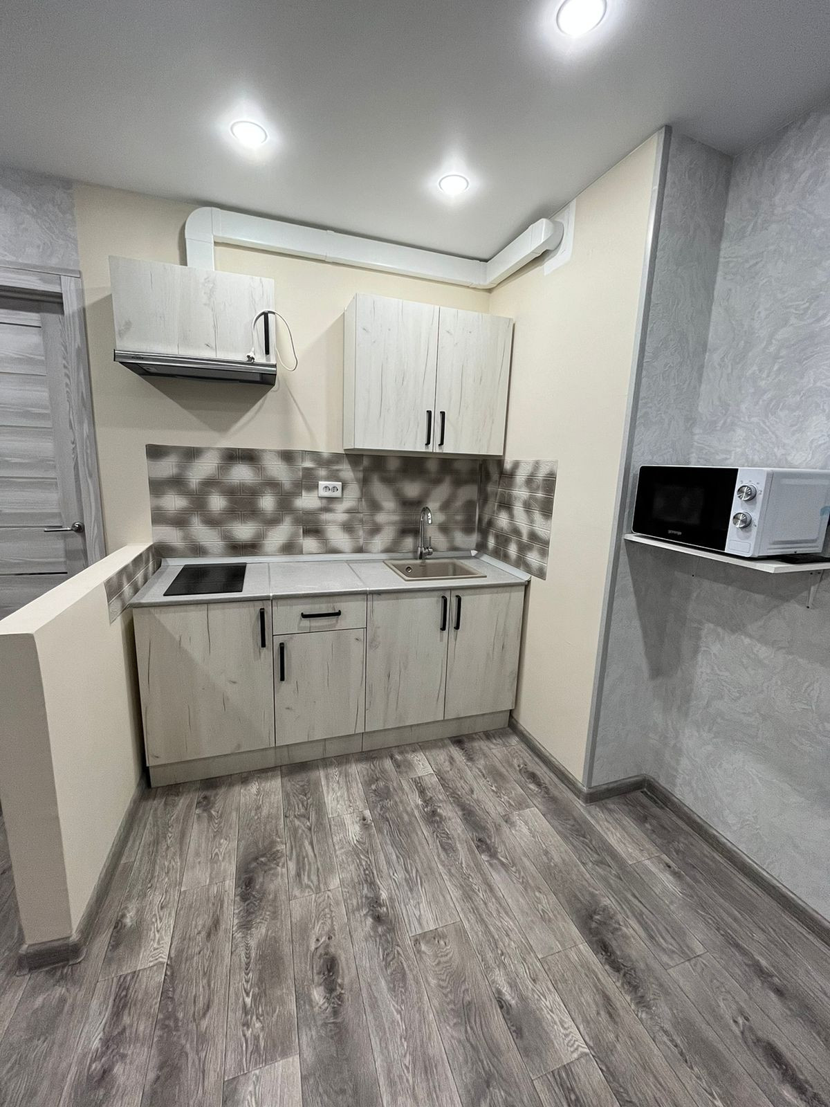 Студия с новым ремонтом.Никто в квартире не проживал.Остается кухонный гарнитур, эл.плита,вытяжка.Один собственник. Торг возможен.