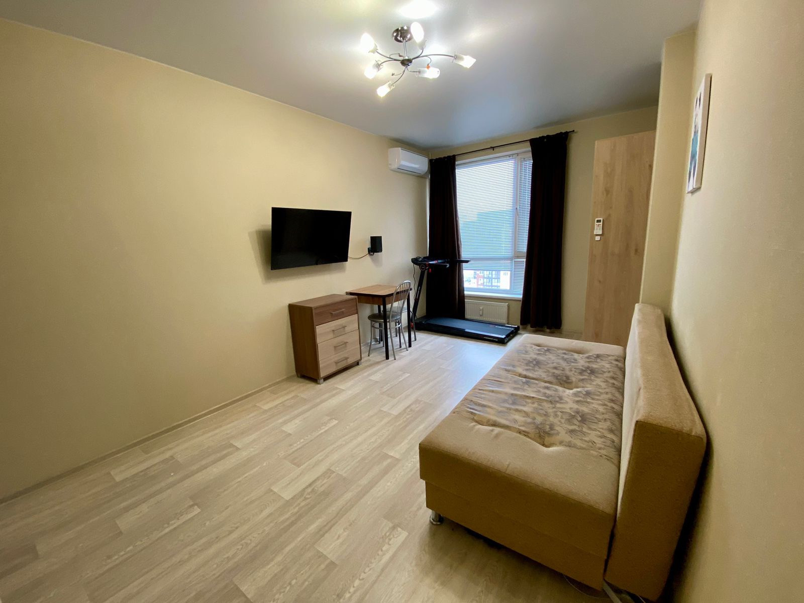 В квартире остаётся кухонный гарнитур, кондиционер, шкаф, комод,