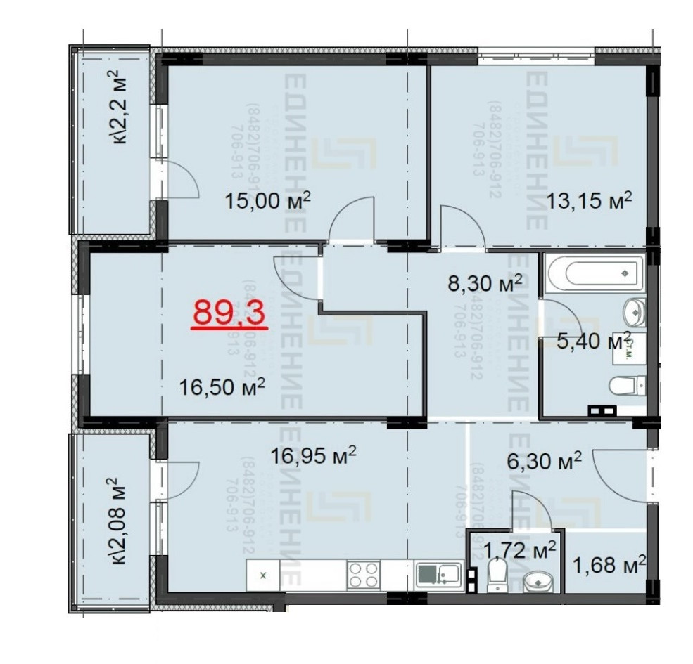 Общая площадь 89.3 м2