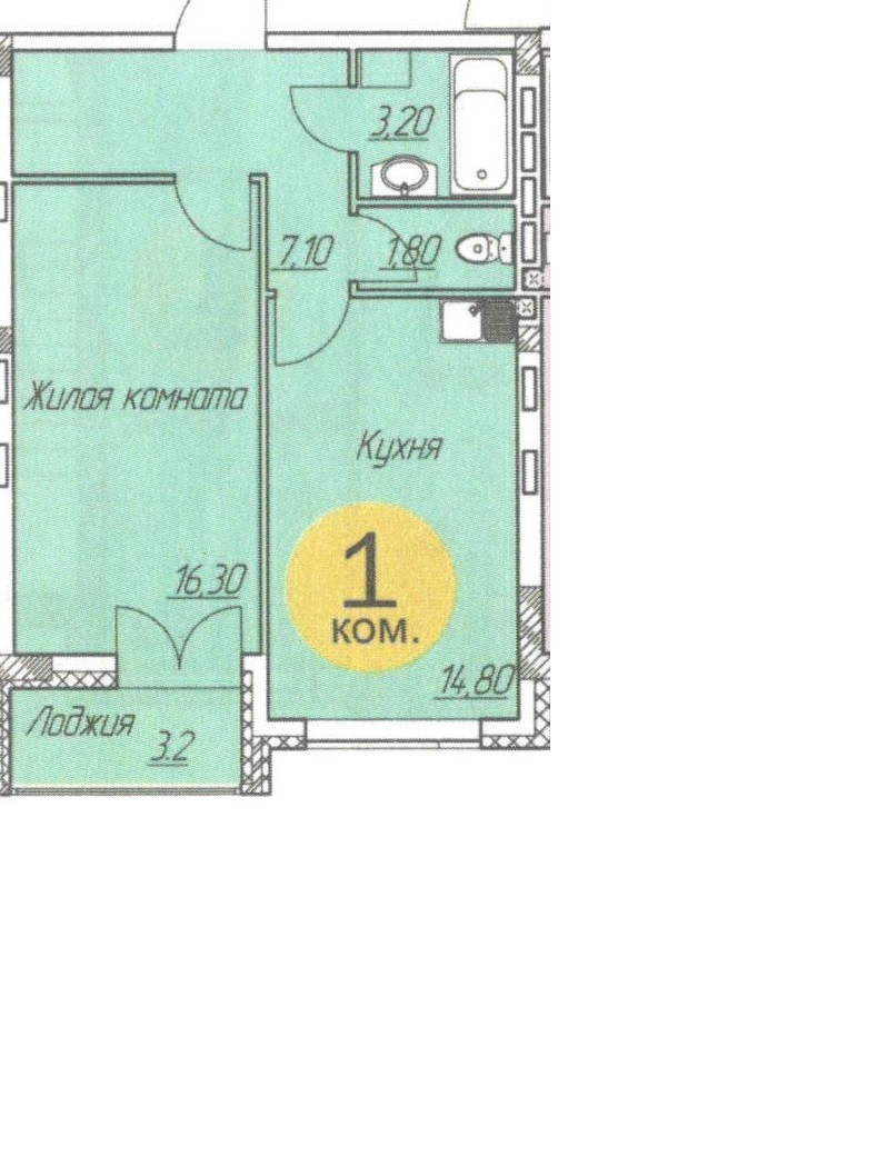 Балкон, лоджия 1 балкон