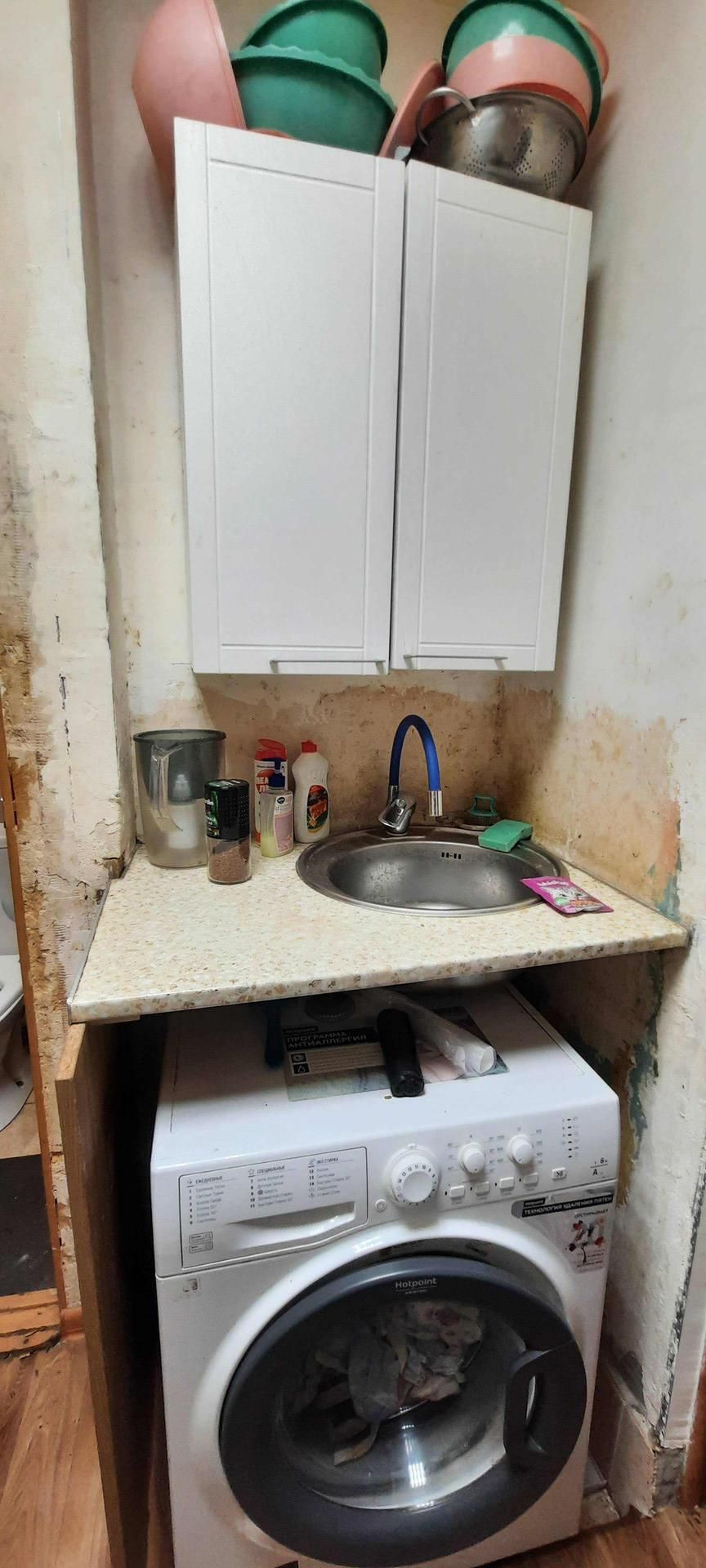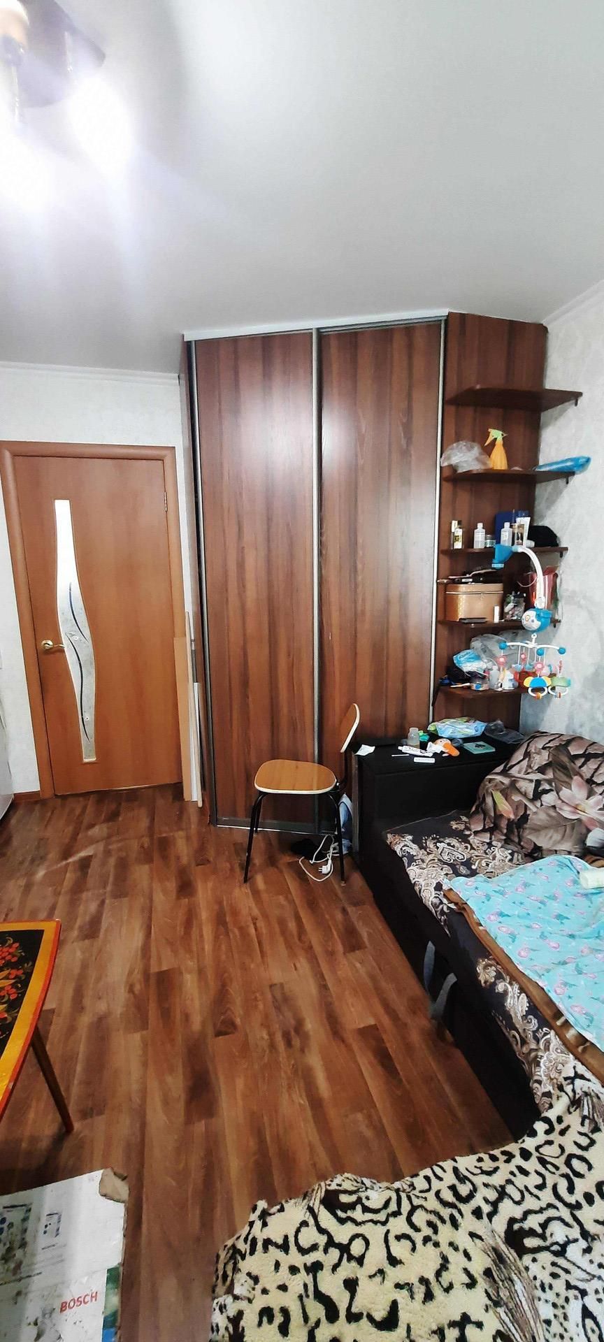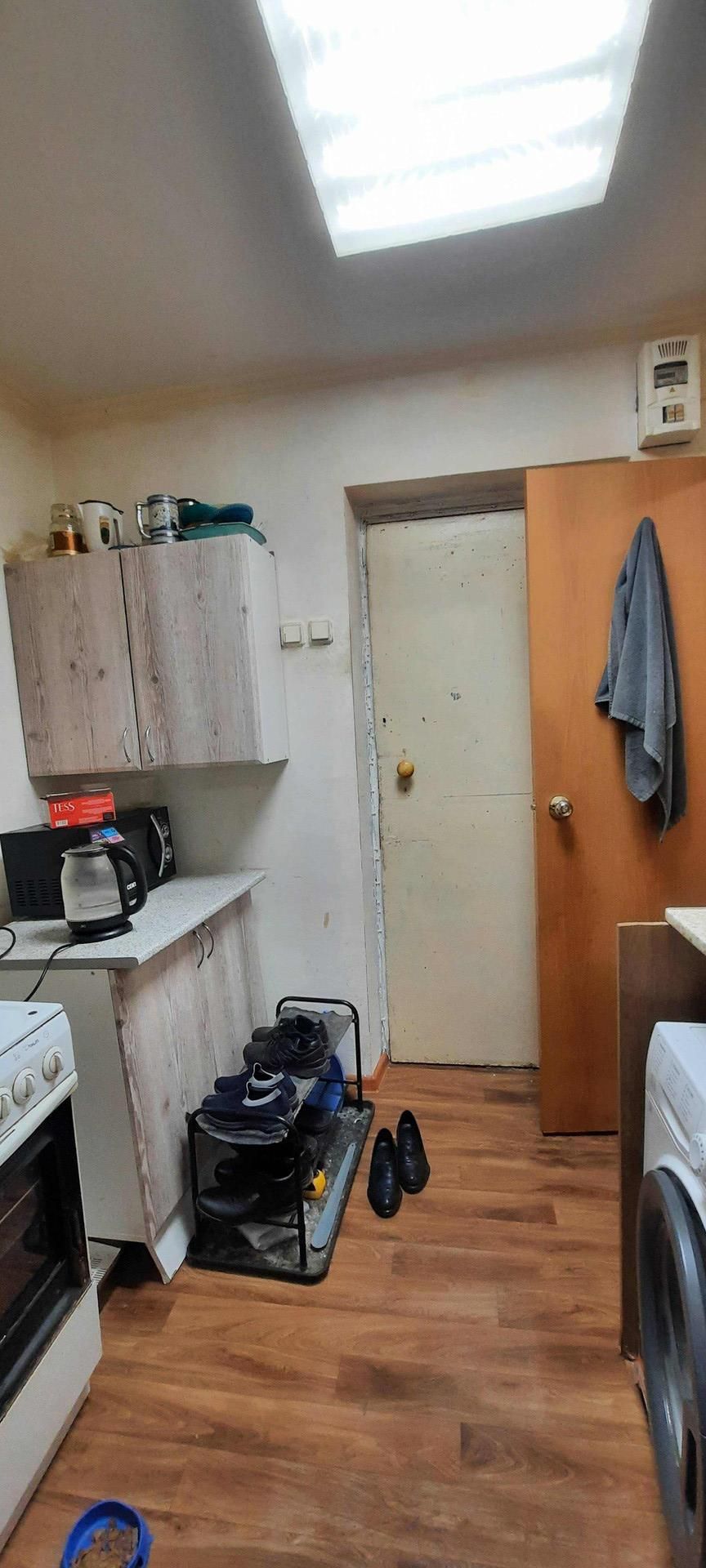 В квартире остаётся шкаф и кухонная мебель .