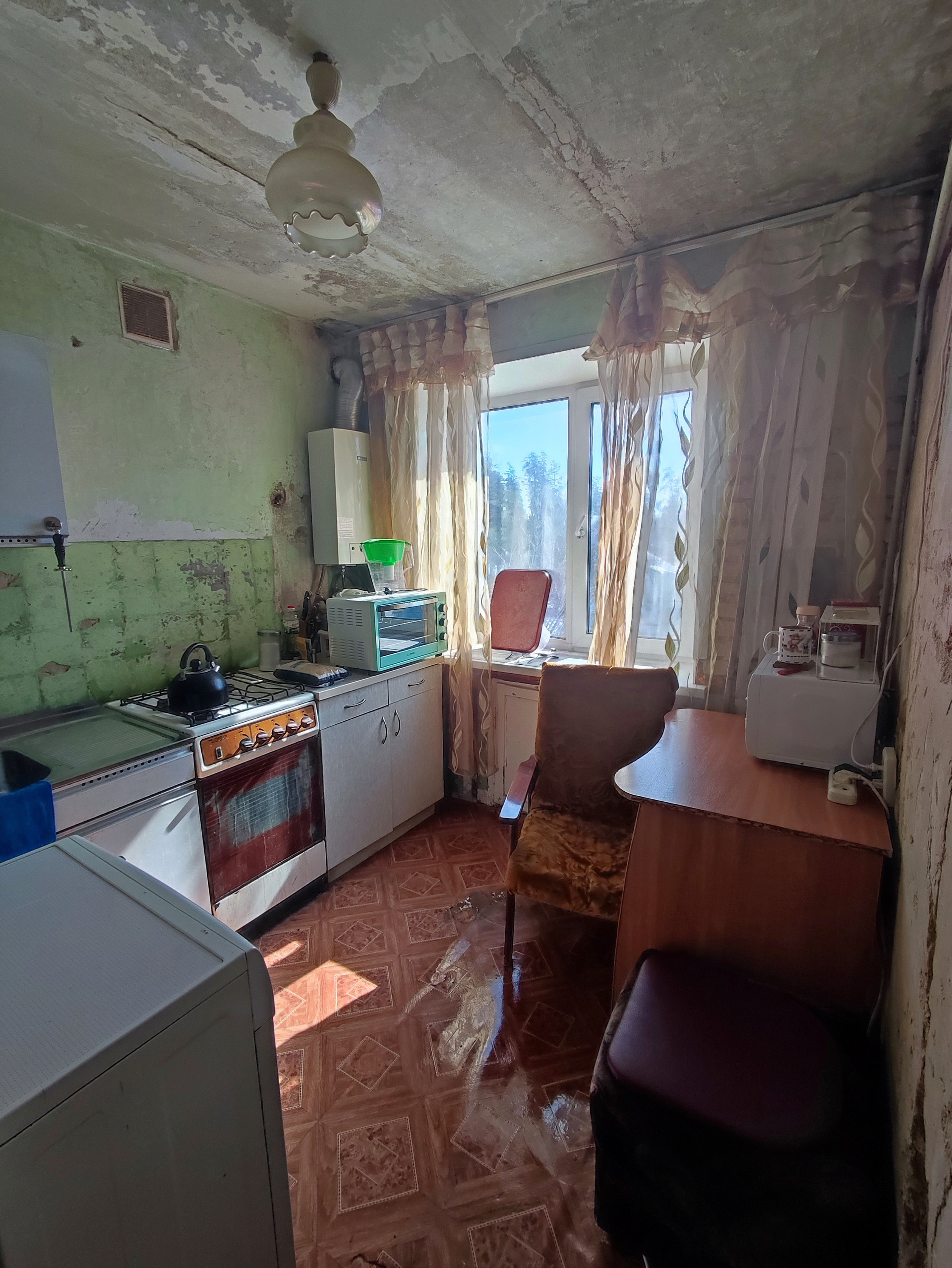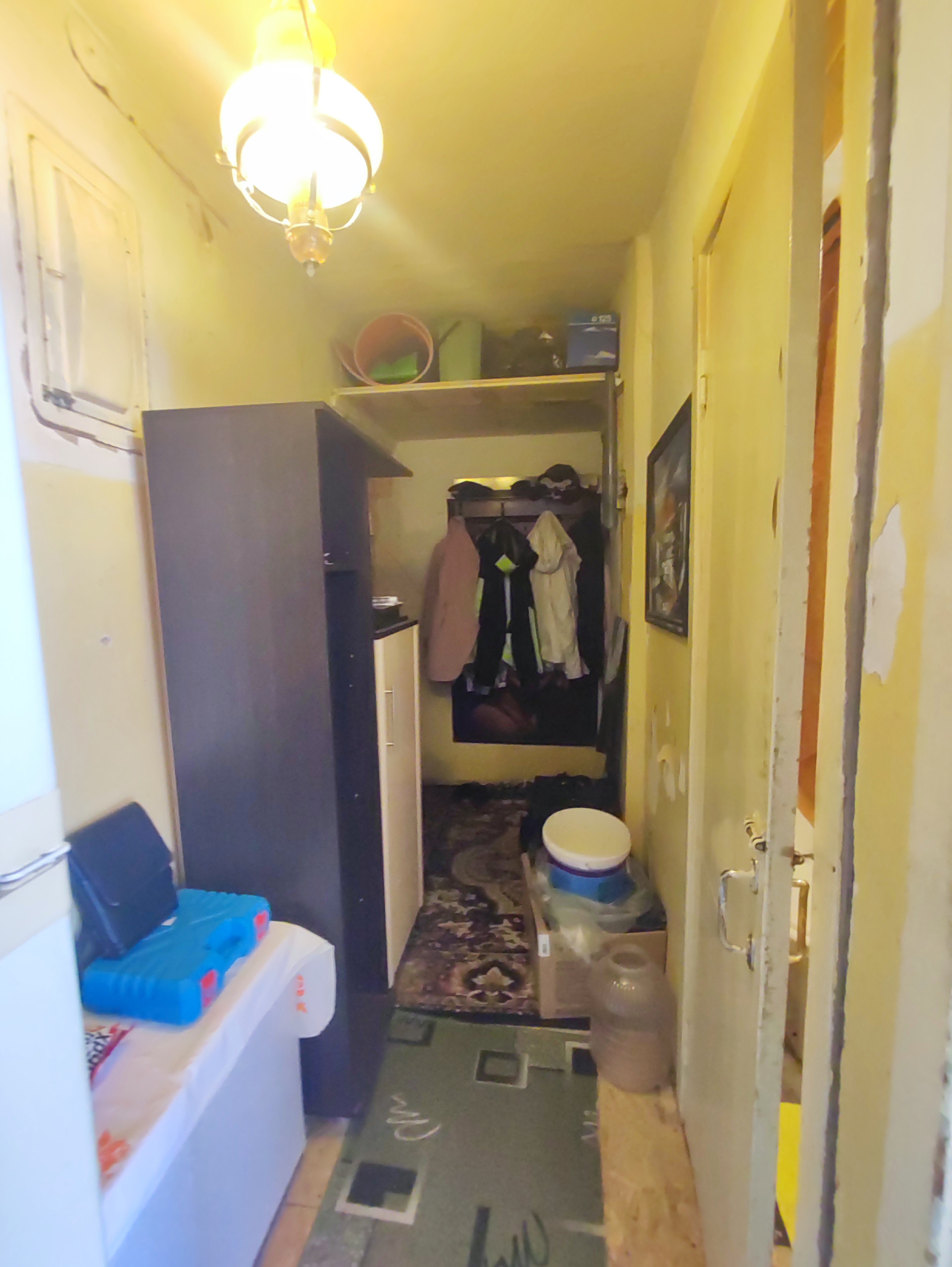 Квартира можно сказать подготовлена к ремонту - убрана старая плитка на кухне и санузле. Комната покрашена краской, поверх можно клеить обои.
