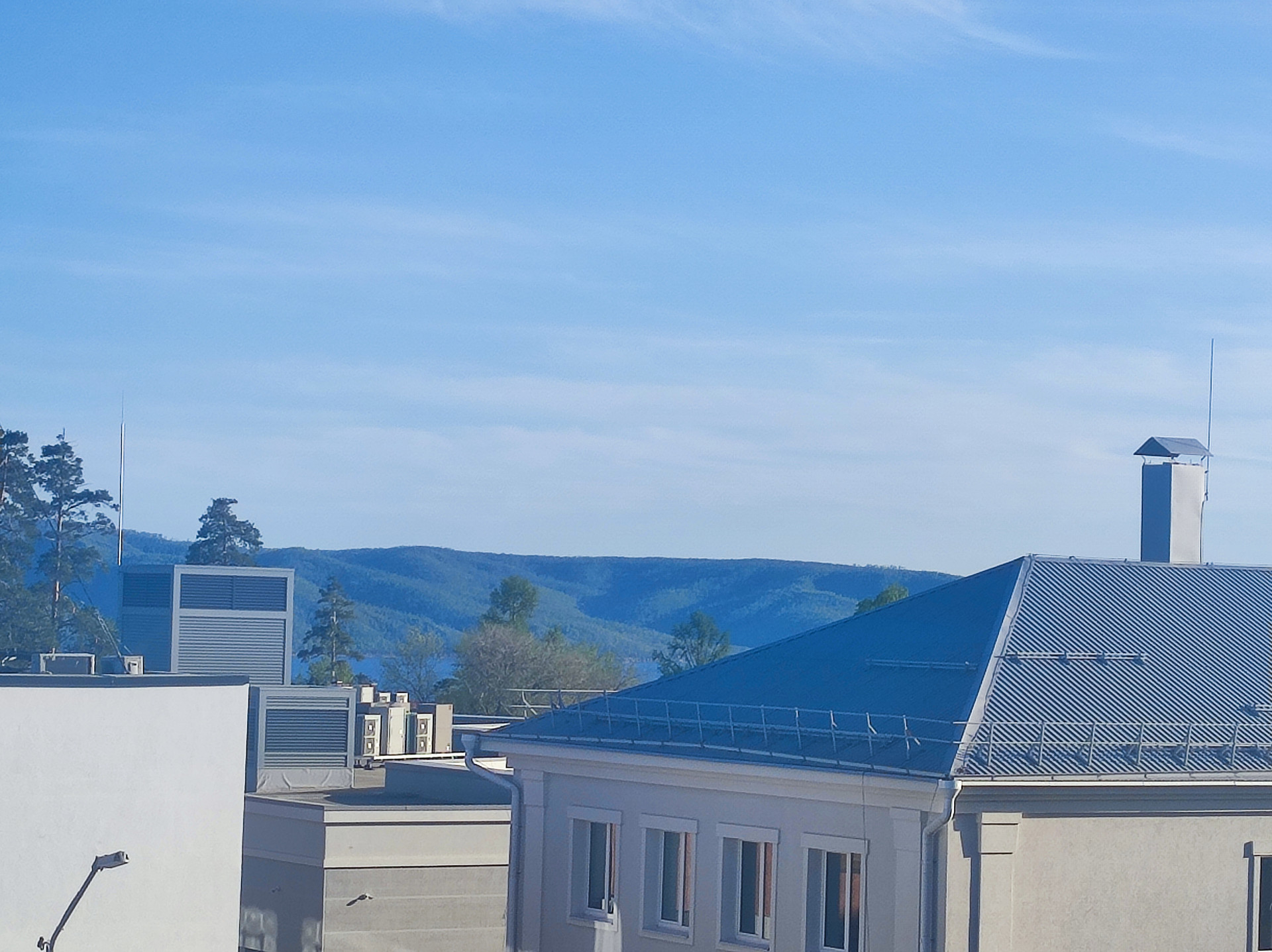 Прекрасный вид из окна - видны горы.