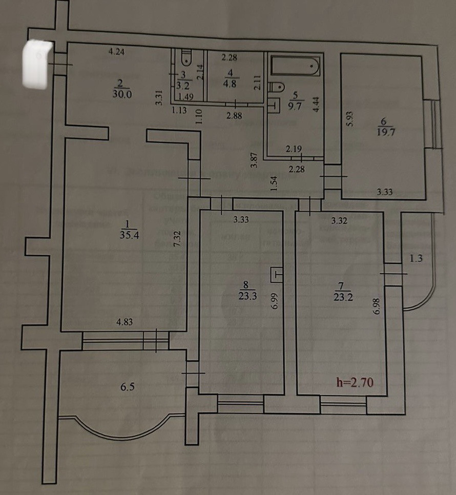 Жилая площадь 78.3 м2