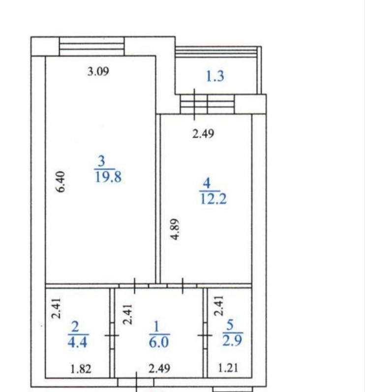 Общая площадь 45.3 м2