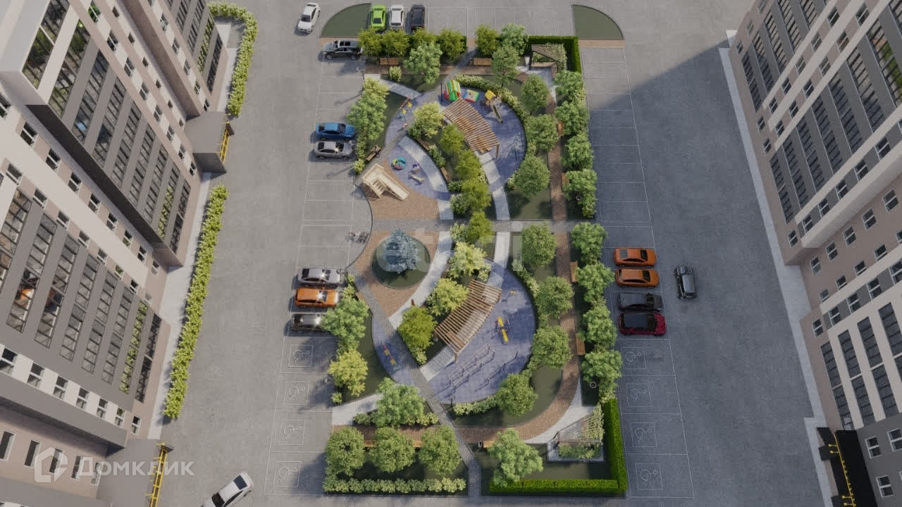 - Уютный двор-парк с лаундж-зонами
