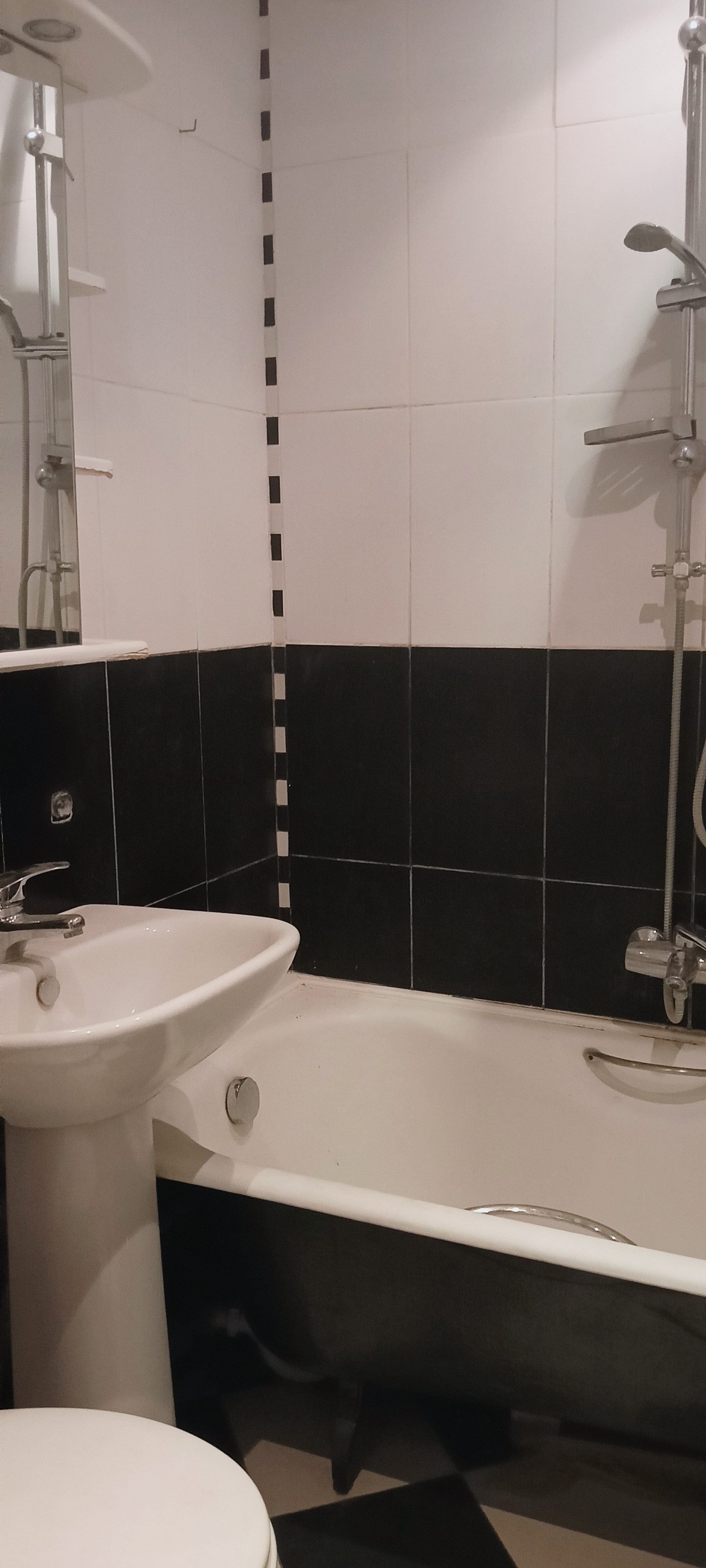 - Ванная комната с чугунной ванной и качественной сантехникой, инсталляция унитаза.