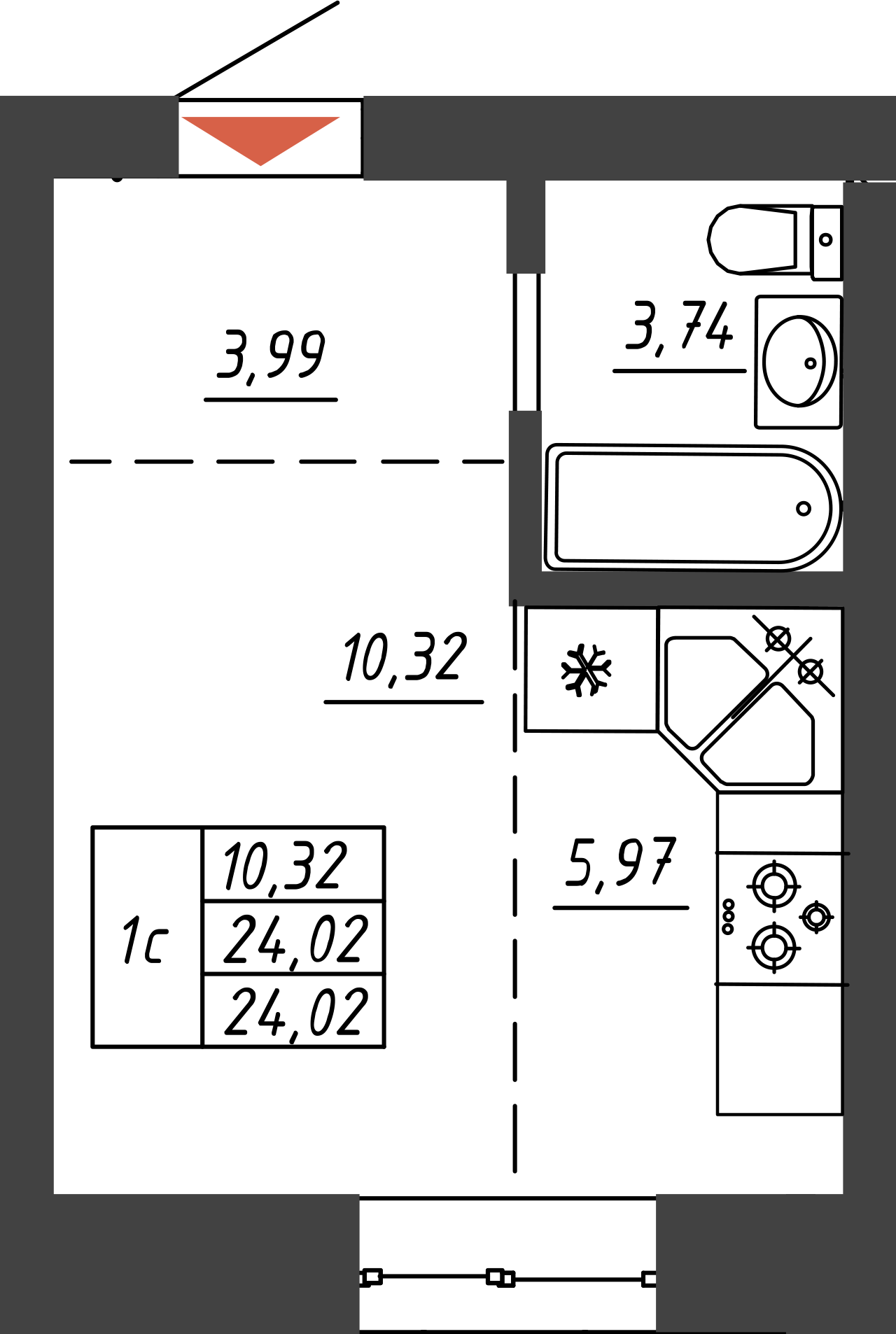 Общая площадь 24.02 м2