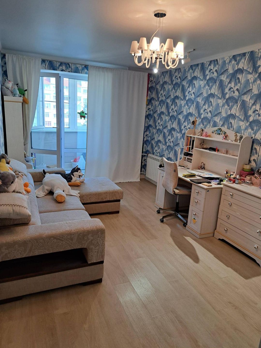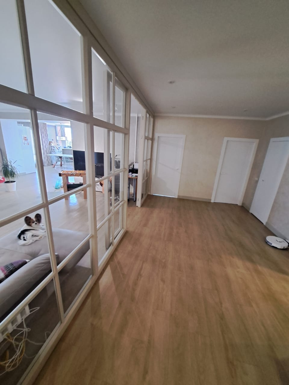 Кузня-гостиная с панорамным остеклением, теплые полы, спальная комната, 2 детских комнаты,2 санузла, просторная гардеробная.