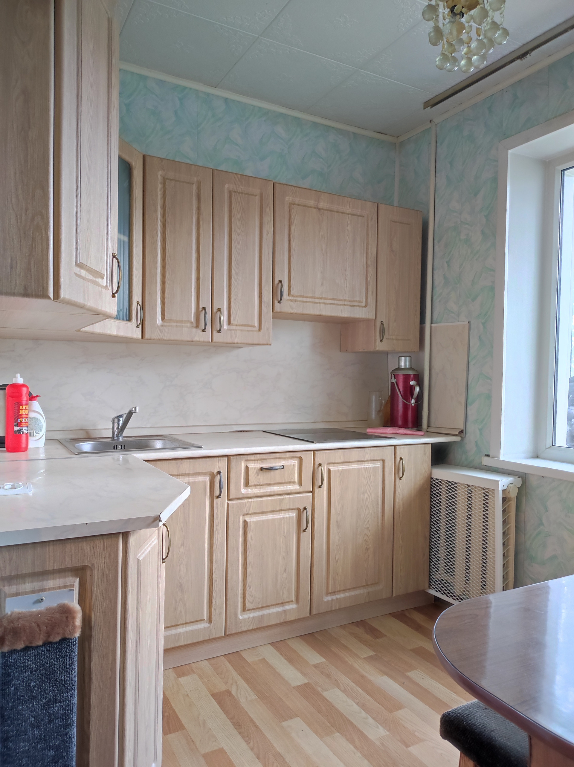 Предлагается к продаже однокомнатная квартира ульяновской планировки. Общая площадь 34,2 кв.м.,кухня 8 кв.м.,жилая площадь 17.1 кв.м. Балкон 6 метров с двумя выходами из кухни и гостиной, имеется вместительная кладовка с полками( можно оформить под гардеробную). Квартира очень светлая и тёплая, но требуется небольшой ремонт. Туалет с ванной совмещены, сантехника в рабочем состоянии. На кухне имеется кухонный гарнитур с варочной панелью, микроволновая печь, холодильник .Балкон отлично отделан, установлены пластиковые окна, имеются небольшие шкафчики для хранения. Квартира находится в хорошем месте. Множество магазинов, кафе, детские сады, школы, небольшой рынок, где всегда можно приобрести продукты с приусадебных участков. Двор тихий, облагороженный, с отличной детской площадкой. Один взрослый собственник, можем быстро выйти на сделку. Приходите смотреть, если вам подойдёт, можем уступить в цене.