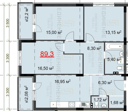 Общая площадь 88 м2