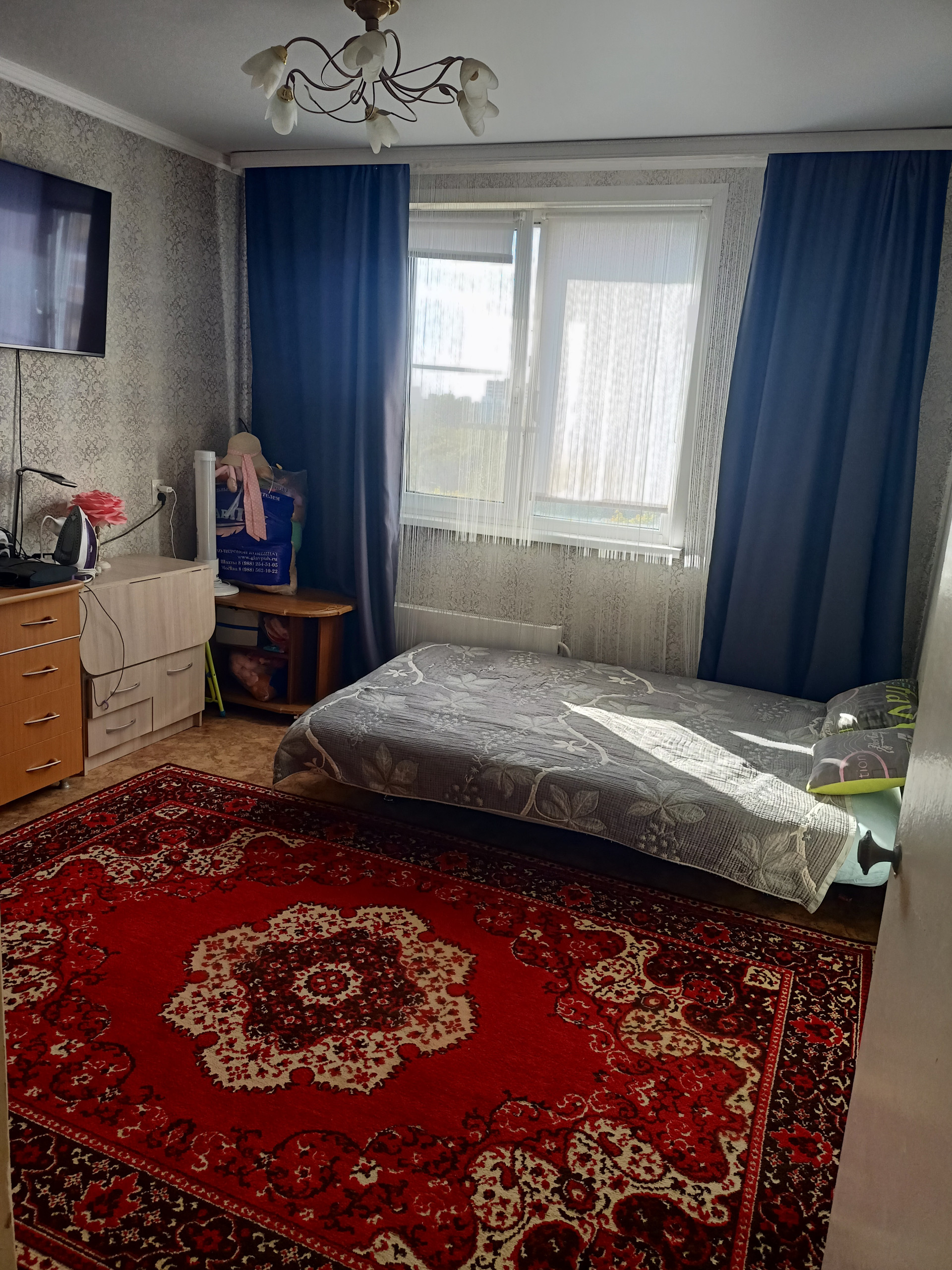 Продается 1ком квартира 32кв.м. Ташкентской планировки на 8 этаже, расположенная в удобном районе города с развитой инфраструктурой. Окна выходят во двор. В комнате натяжной потолок, пластиковые окна.  Остаётся встроенный шкаф-купе, кухня.