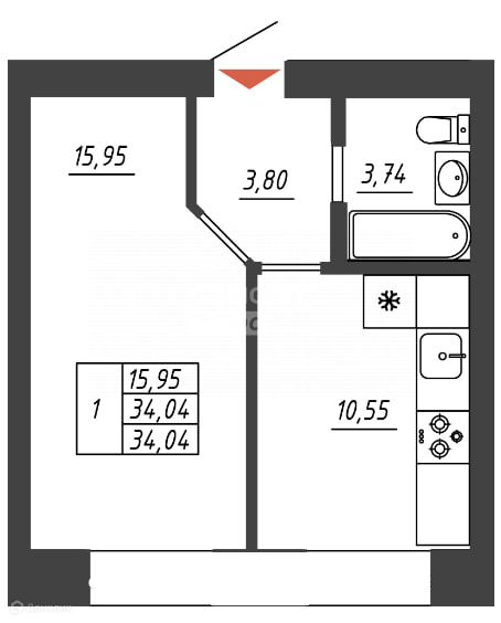 Общая площадь 38 м2