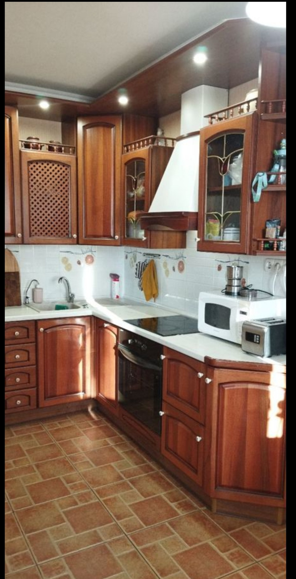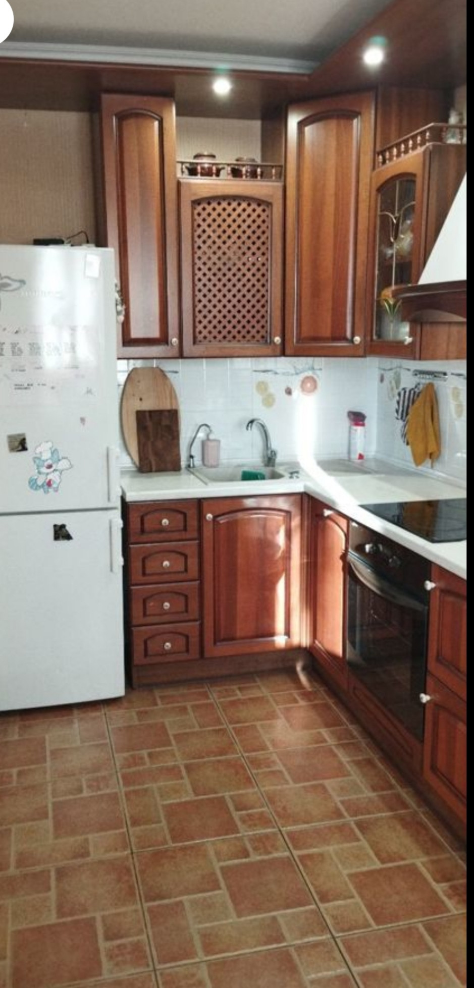 Отличный кирпичный дом,отличное расположение,в тихом месте,с прекрасным видом. Просторная, светлая, теплая  квартира. В квартире остаётся кондиционер, встроенная кухня с техникой ( варочная панель, духовой шкаф, вытяжка, холодильник). Есть гардеробная 1,5 *1,5. Пластиковые окна , новые радиаторы, натуральные деревянные межкомнатные двери. На кухне тёплый пол.  Дом под наблюдением видиокамер.  В подъезде и вокруг дома чисто . Консьерж. Есть грузовой лифт.