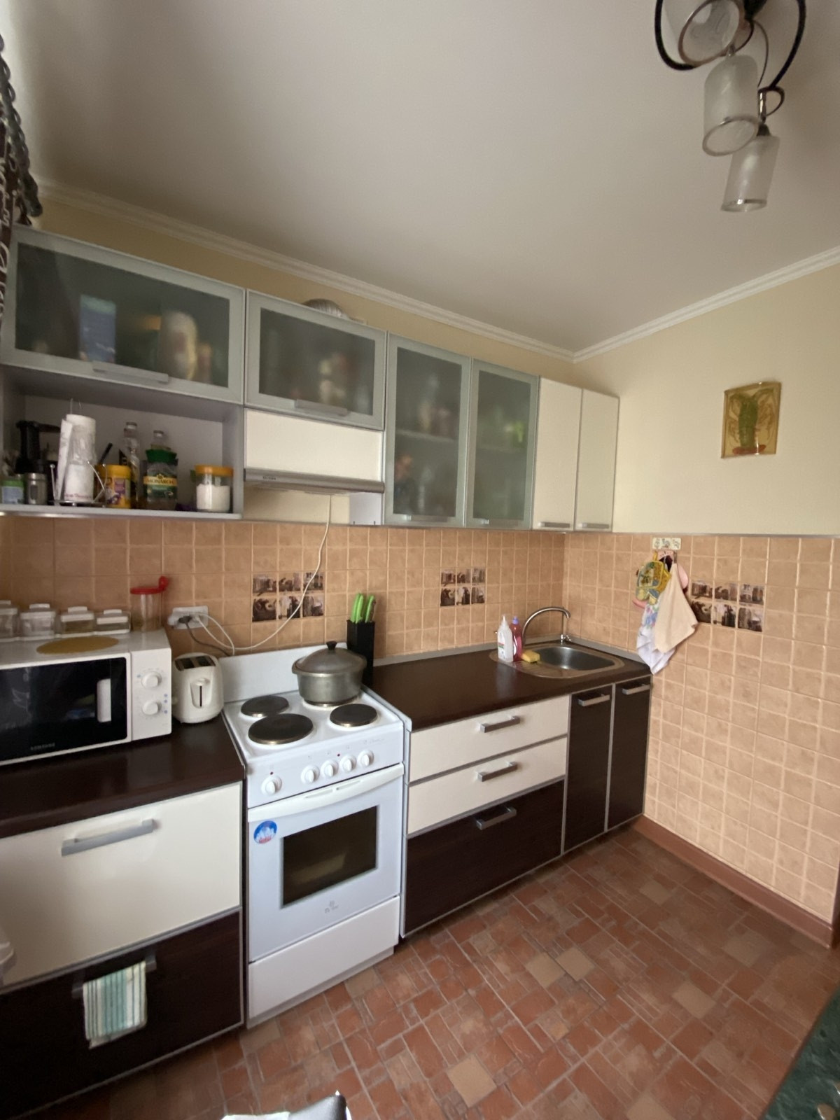 Уютная, чистая квартира,  выровнены стены, отштукатурены потолки, заменены радиаторы, пластиковые окна, и балконные рамы. Полы -  плитка в кухне и коридоре, в комнате постелен линолеум. Оставим вместительный шкаф купе, кондиционер, а кухню по договорённости, так же имеется вместительная кладовая. Заменены водопроводные трубы и канализация. Сад во дворе, школа в шаговой доступности, магазины парк и лес все рядом!