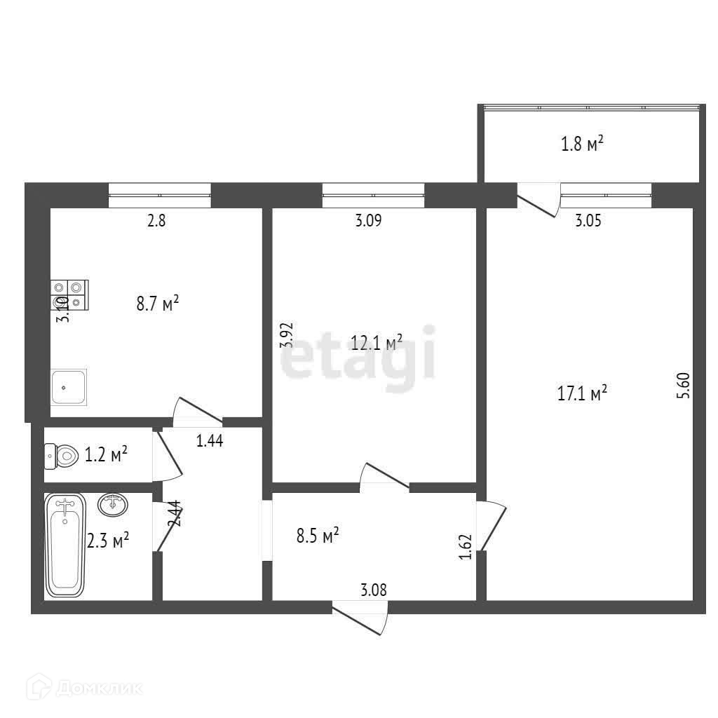 Общая площадь 51.1 м2