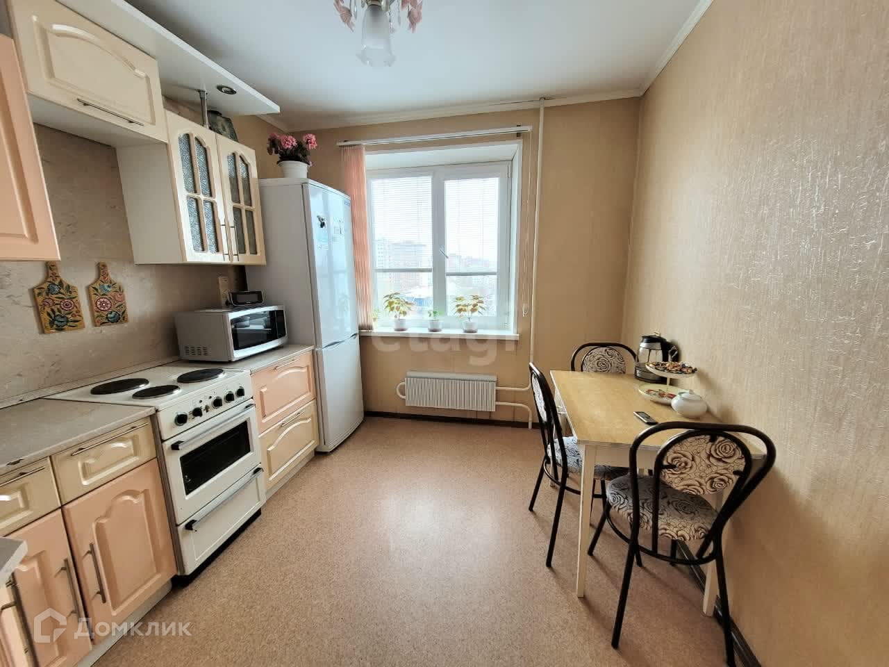 Остается кухонный гарнитур и встроенные шкафы в коридоре, кондиционер.