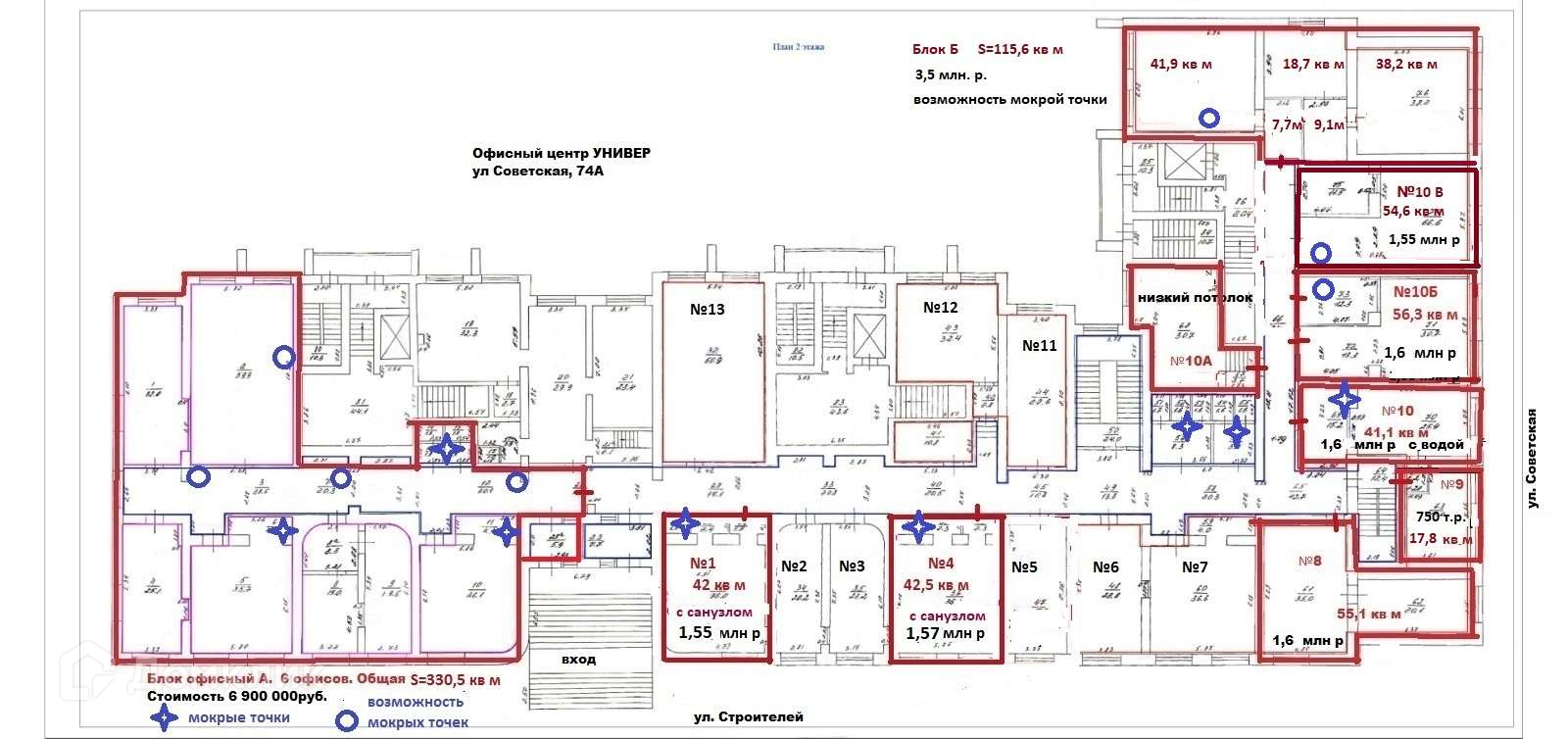 Уютный офис теплый с окном и тамбуром №9 (см схему) в офисном центре УНИВЕР. Окно выходит на ул. Советская. Двери новые установлены, включая тамбур, новый потолок, новые батареи отопления. Здание бывшего университета им Татищева.