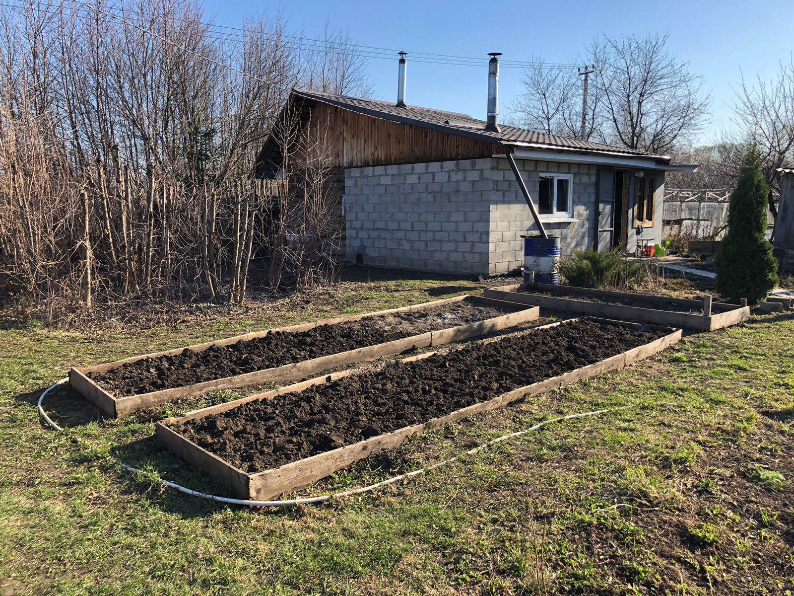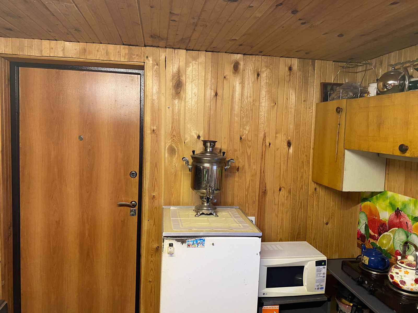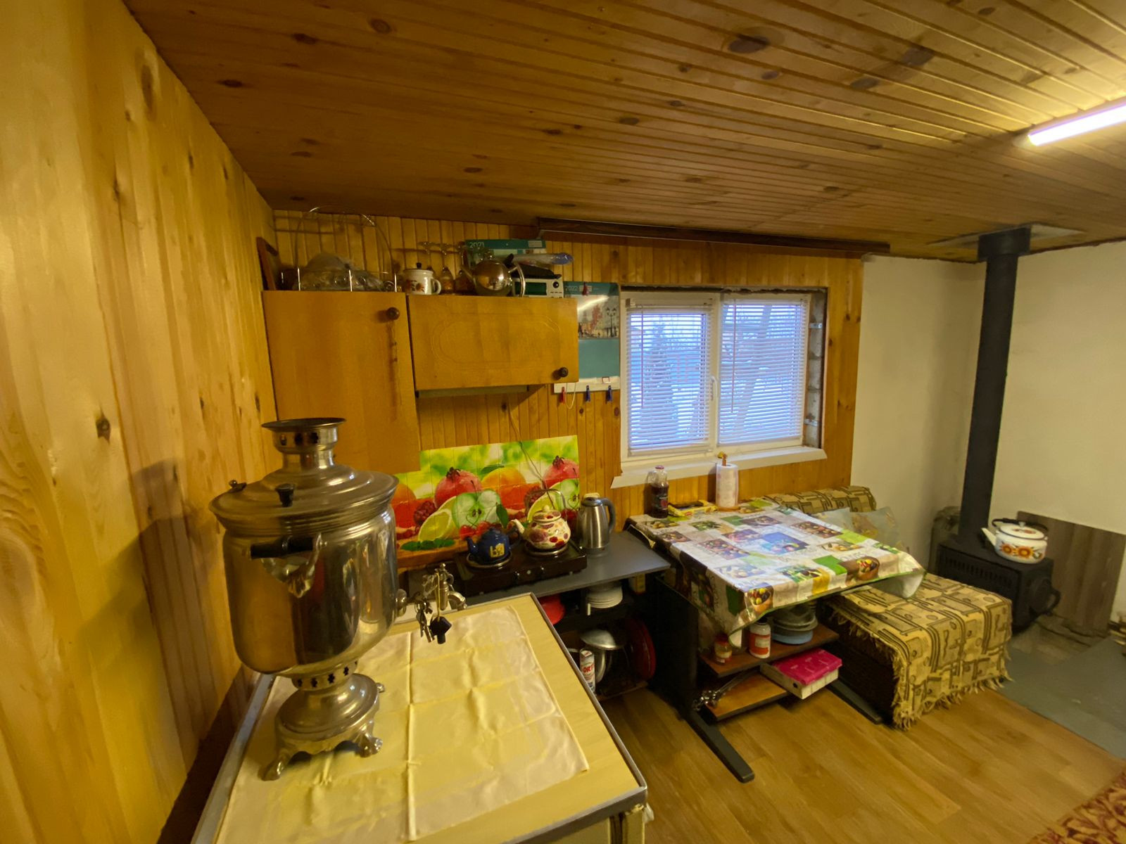 В доме есть печка, топится дровами, зимой гостевая комната прогревается за 30 минут, поэтому можно смело ночевать зимой или приезжать на отдых в баню в выходные. Электричество круглый год. Вода постоянно с апреля по октябрь. Сделана разводка пластиковых труб по участку. Туалет деревянный на улице, есть будка для инструментов и инвентаря. Забор профлист, есть заезд для машины.  На массиве есть магазин и круглогодичная охрана. Имеются насаждения (абрикос, груша, яблоня, вишня, виноград, черноплодка, шелковица, смородина, клубника) Торг уместен.