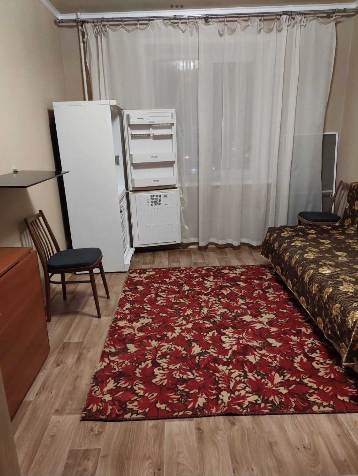 Сдается чистая , уютная комната в 3-х комн. квартире. В квартире : одна комната закрыта, в другой проживает одна женщина, третью сдаем мы. Комната полностью оборудована для комфортного проживания. Есть: холодильник, стиральная машинка, кровать, стол, стулья. Сдаем только женщине или девушке без вредных привычек и без животных. Приезжих с содружественных государств не заселяем. Оплата в месяц 8000 тыс . В эту стоимость входят все коммунальные услуги. При заселении единоразово оплачивается комиссия 50% .