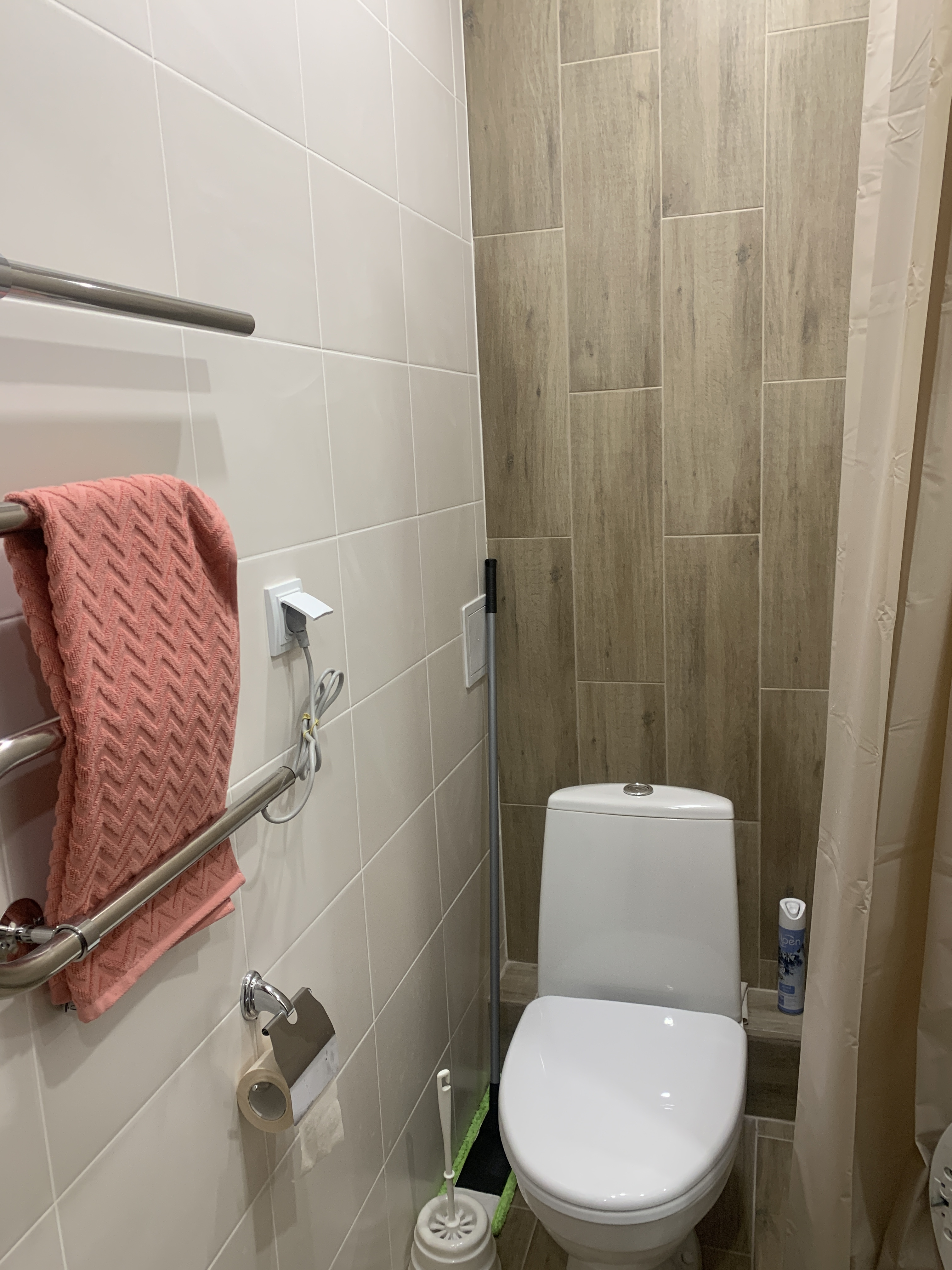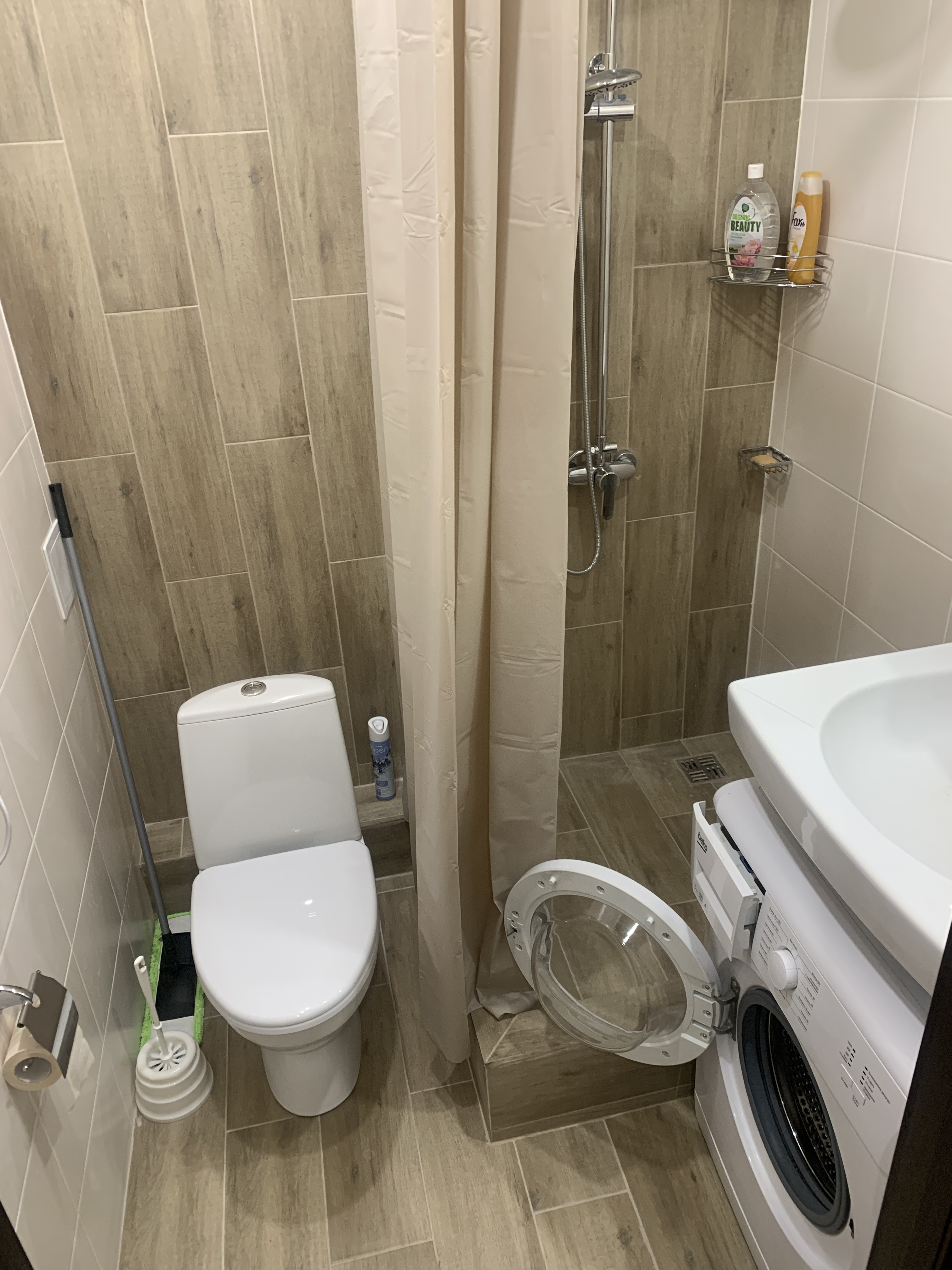 - санузел под ключ: кафель, полотенцесушитель, раковина, стиральная машина автомат, зеркало