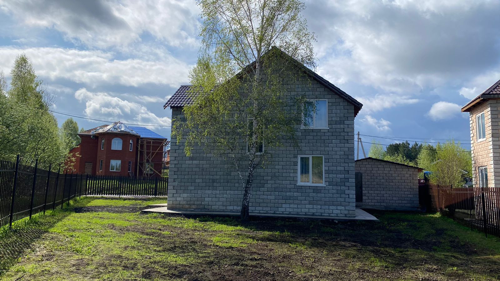 Участок ровный, имеет возможность подъезда с 2 –х сторон Выполнен ландшафтный дизайн обработка земли по периметру высажен газон. Дорожки и подъездные пути выполнены из печатного бетона имитирующего натуральный камень