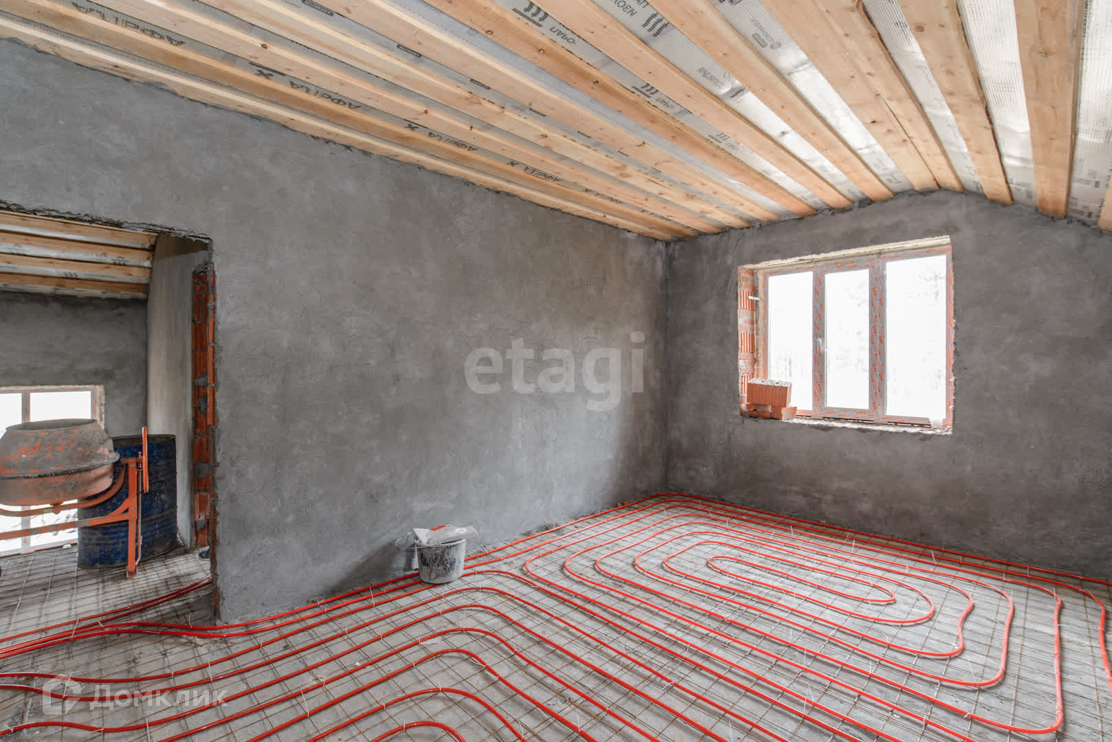 Площадь дома 160 м2, тёплые полы на двух этажах, стены оштукатурены и от шпаклеваны (остаётся только наклеить обои или покрасить), подоконники и откосы смонтированы.