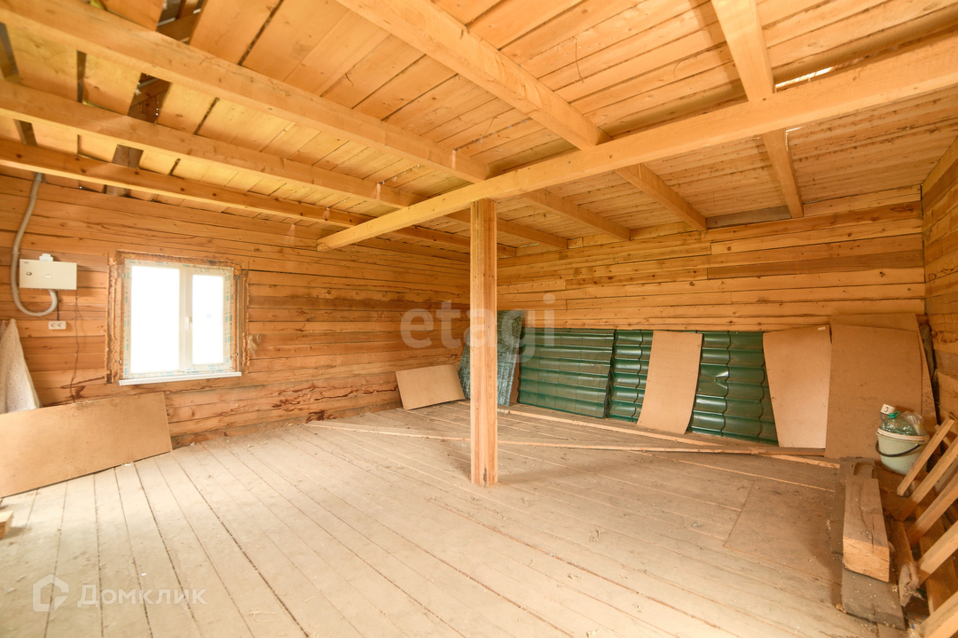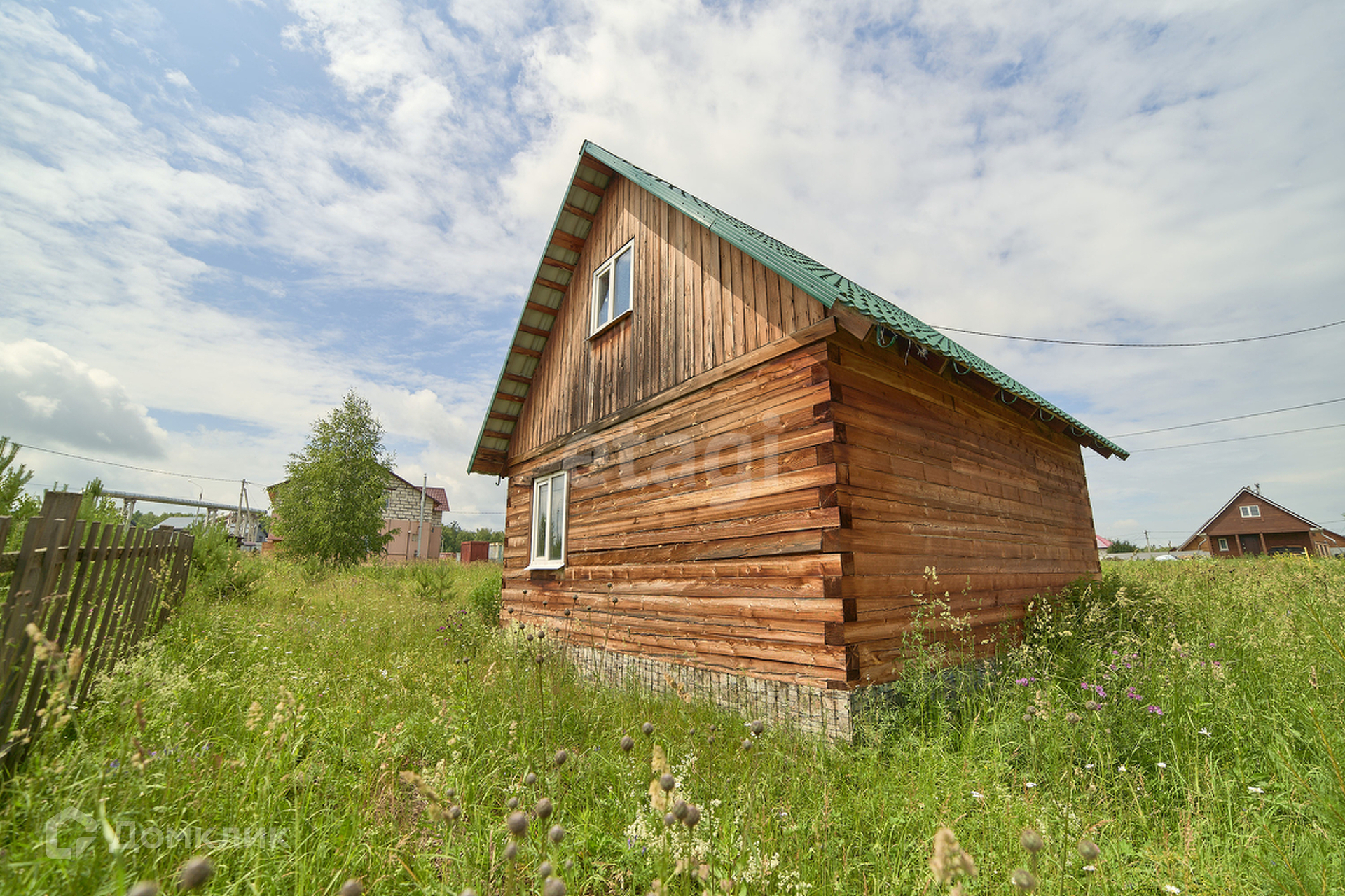 Продаём участок и жилой, в черновой отделке, дом. Площадь дома по полу – тридцать шесть квадратных метров. По документам – два этажа, пятьдесят метров. Электричество заведено в дом. Газ заведён на участок. Есть септик. Сечение бруса 150*150. В перспективе переделывается под баню или домик для гостей. Участок просторный, есть где строить новый дом. Почва хорошая, плодородная. На участке растёт две вишни, смородина, малина, крыжовник, можжевельник, ель голубая, сосна.