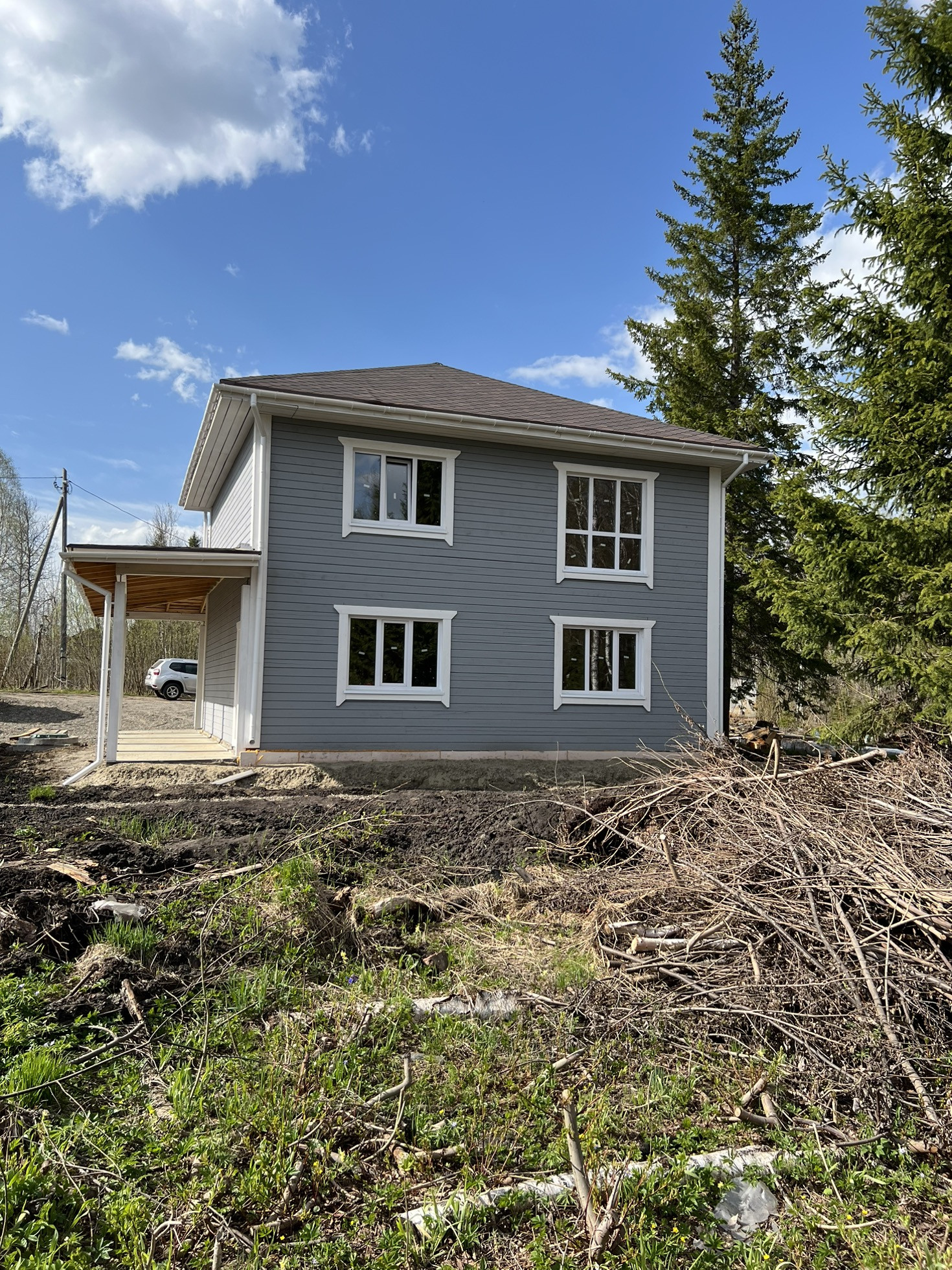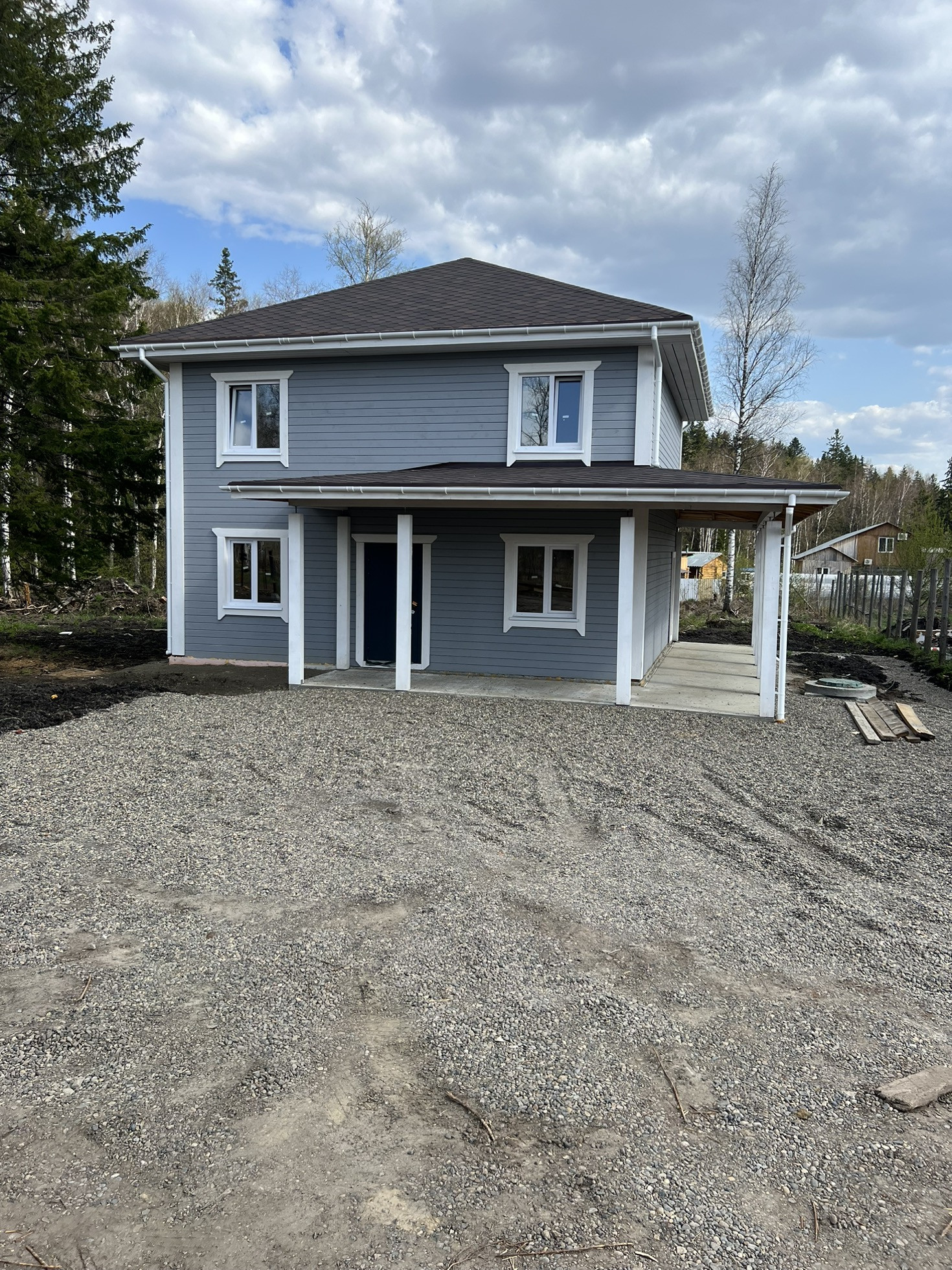 Дом два этажа , материал стен кедр толщина 200 фундамент железобетонная плита ,покрытия крыши мягкая черепица ,