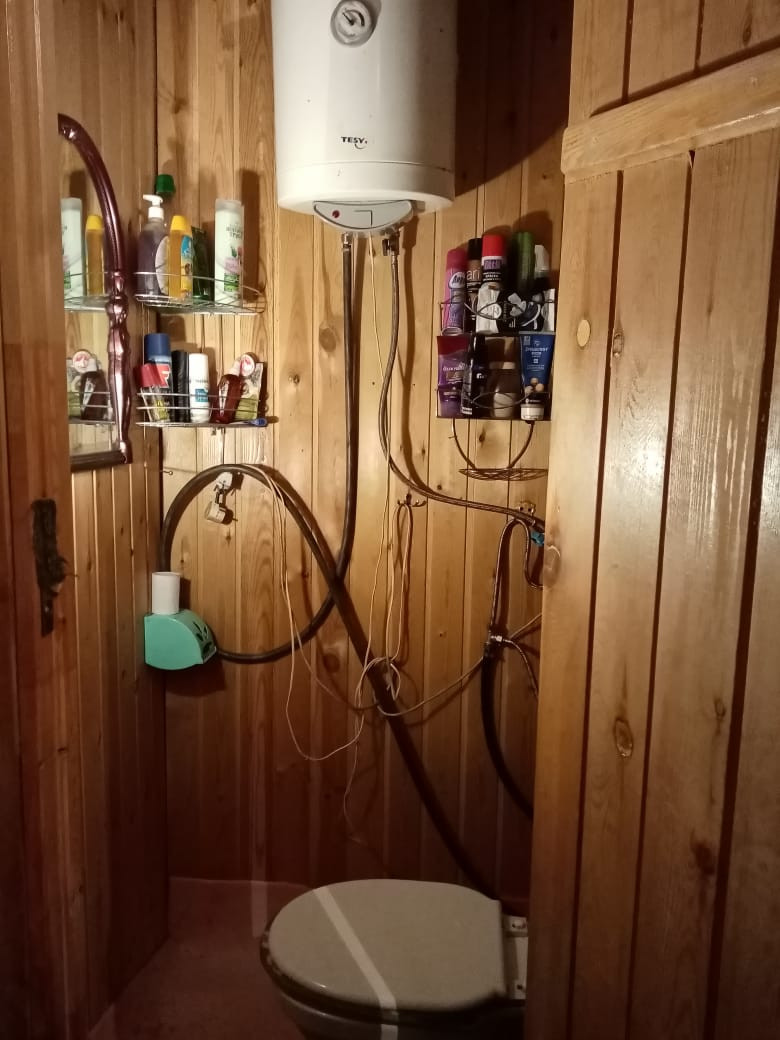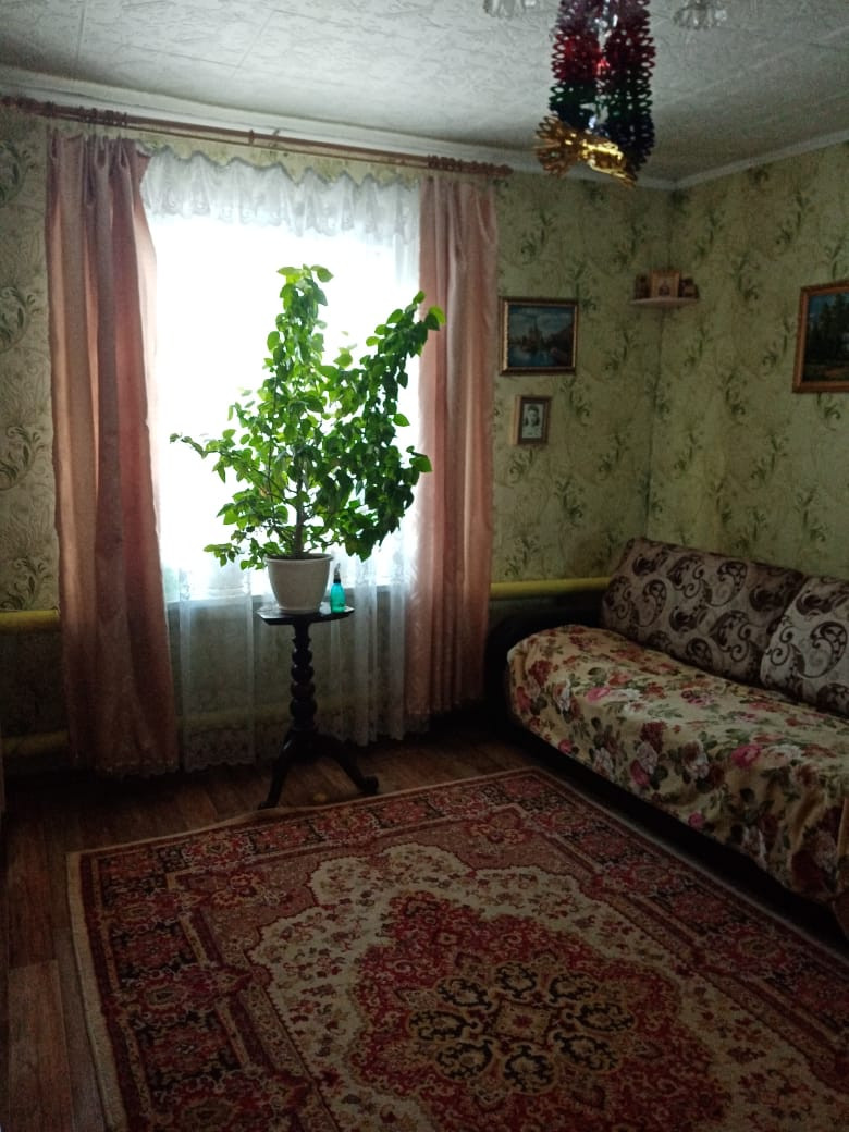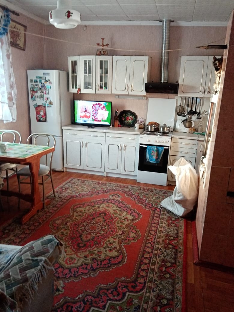 В доме две комнаты, кухня 16 кв.м. Отопление дрова, есть электроотопление.Вода скважина. В доме душ, туалет.К дому пристроена летняя веранда. Имеются постройки: два сарая, бревенчатая баня, навес, стайка, кирпичный гараж, погреб. Огород ухоженный с насаждениями, есть теплицы. Подведение газа к дому декабрь-февраль.
