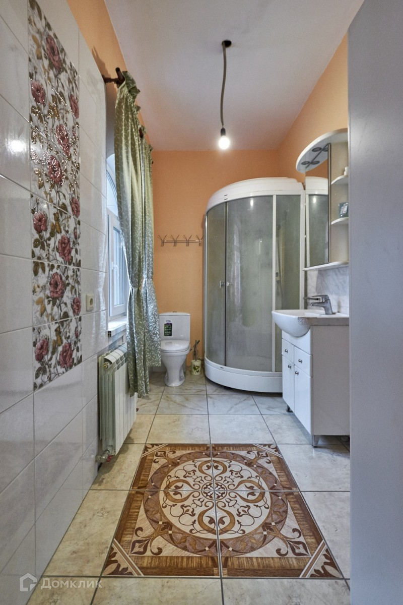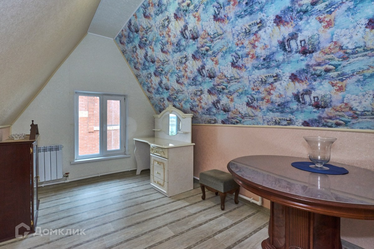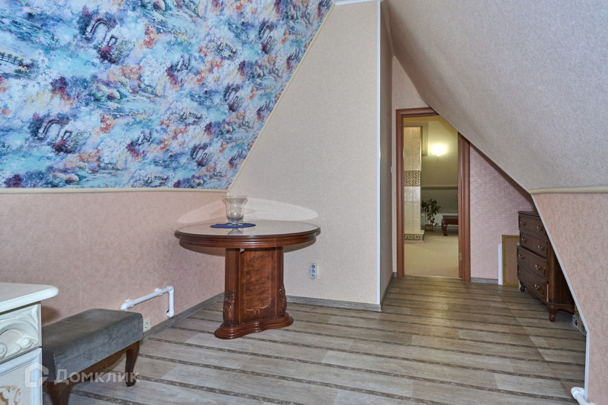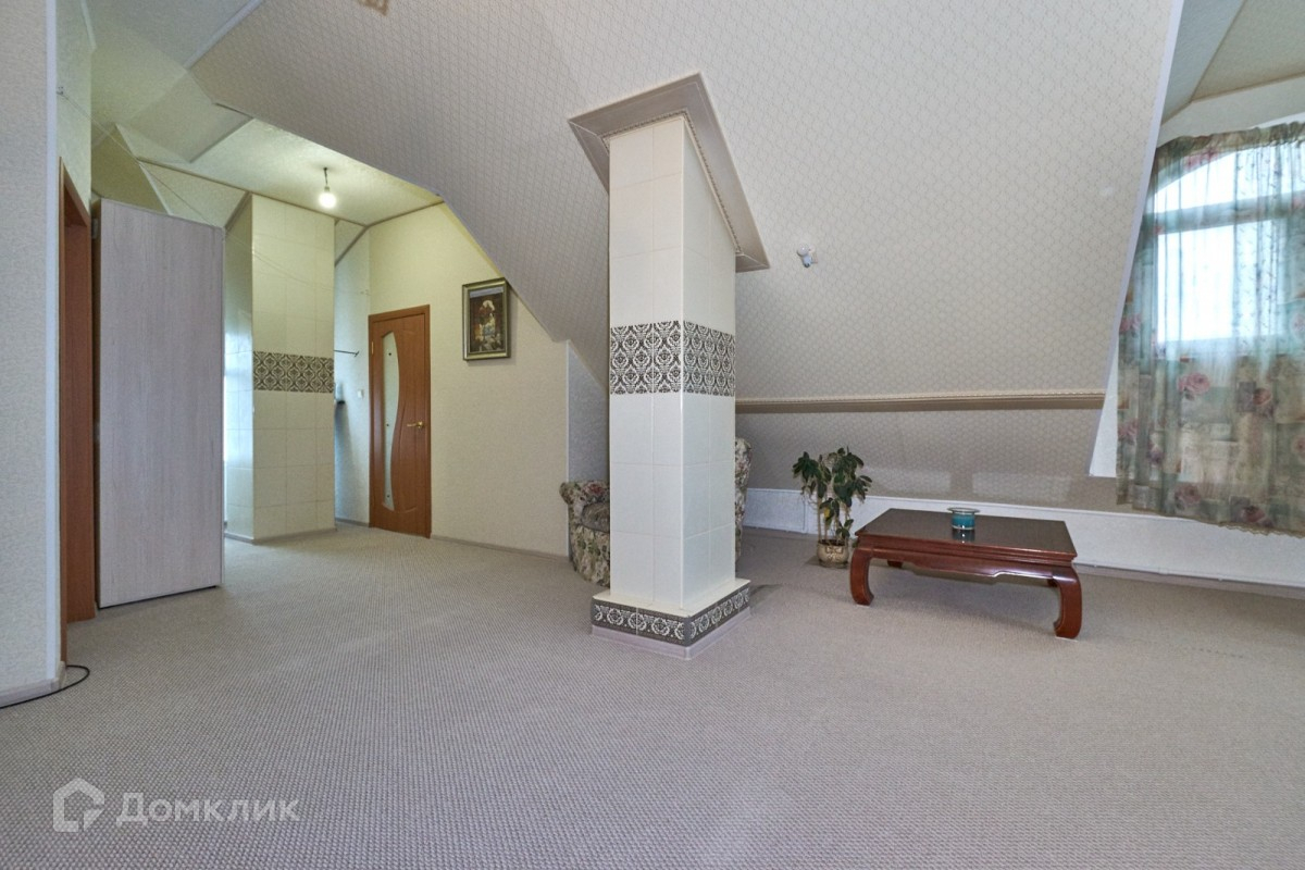 Второй этаж мансардного типа, высота потолка 3 м (4 комнаты, санузел ванна), полы ковролин, линолеум, кафель.