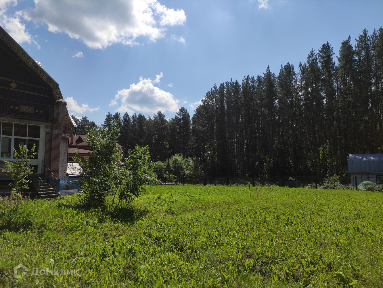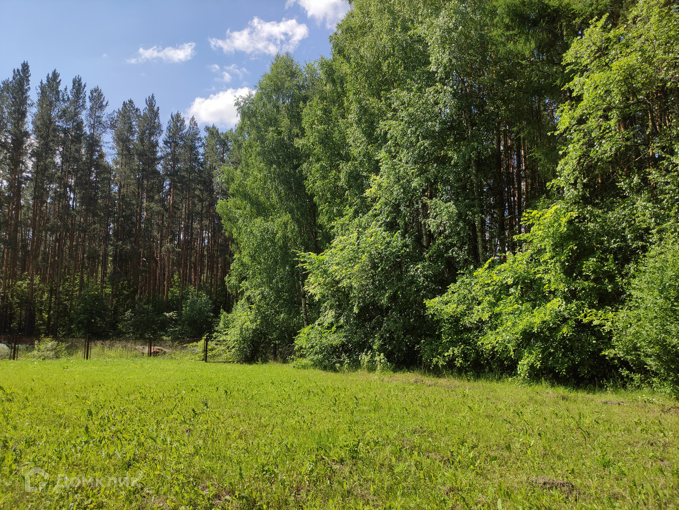 Участок с двух сторон огорожен сосновым лесом. Место придостаточно для строительства беседки, бани, бассейна.