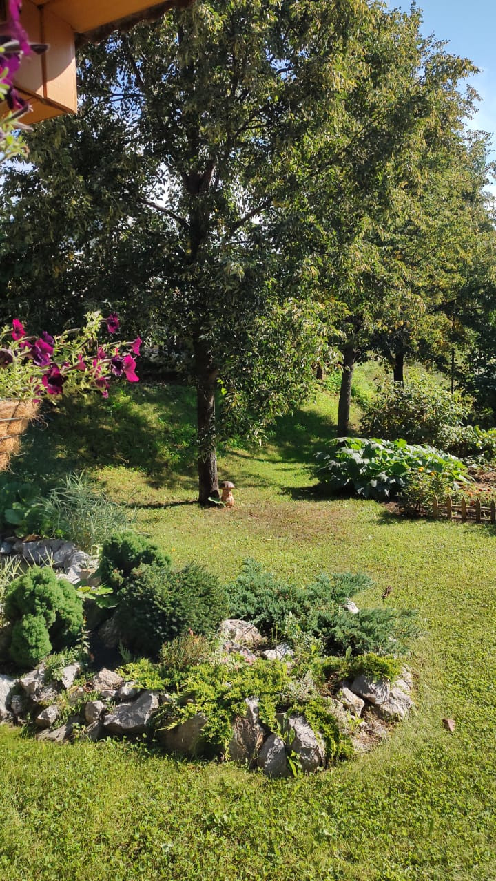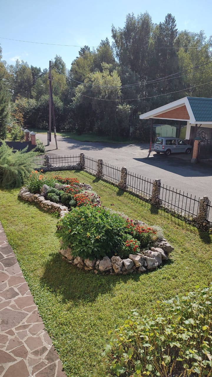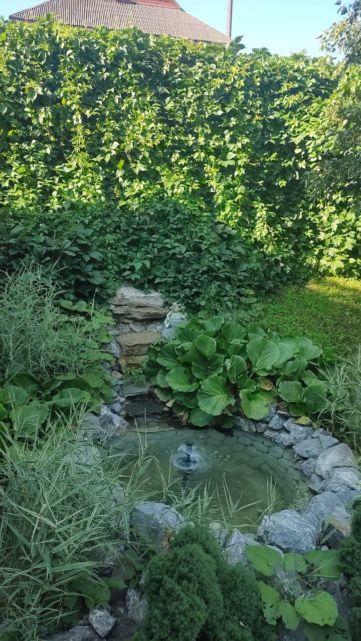 Земельный участок благоустроен: отведена вода, оборудованы стоки, тропинки и отмостка выложены натуральным камнем , песчанником. На территории расположен домик для отдыха с камином и зоной барбекю, декоративный бассейн с фонтаном и водопадом теплица на фундаменте с автоматическим открытием форточек. Имеется площадка для установки бассейна. Участок озеленен деревьями ( липа, маньчжурский орех , туя, яблони, и кустарниками ( смородина, крыжовник,черноплодная рябина, жимолость).