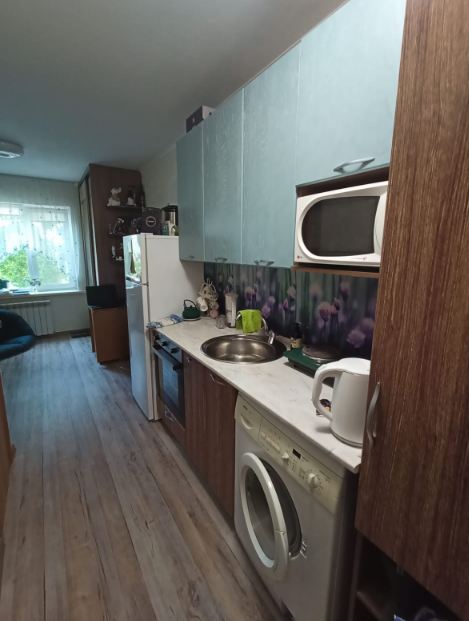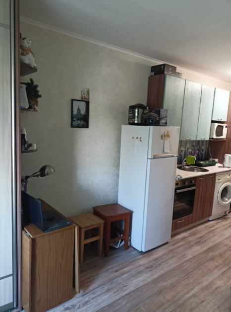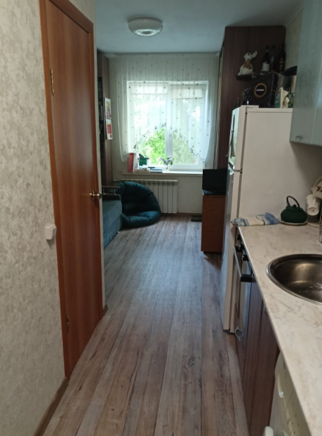 Великолепная ухоженная гостинка в современном микрорайоне с развитой инфраструктурой!, площадь по документам 17.6 кв м. Надежный новый дом 75 серии с отличной управляющей компанией, автобусная остановка в 1 минутах хотьбы, подъезд в идеальном состоянии, чистый и ухоженный, приятно зайти на этаж. Гостинка расположена на первом этаже с окнами в тихий двор, независимость от лифта, очень теплая и светлая, состояние квартиры прекрасное, пластиковое окно, отличная входная дверь, современные радиаторы отопления, стены и потолок выровнены, свежие обои, в санузле кафель, на полу линолеум. Планировка квартиры очень удачная , комната правильной формы- достаточно просторная, остается хороший кухонный гарнитур, стиральная машинка автомат, холодильник, шкаф-купе, диван, бойлер. Капитальных вложений квартира не требует, заходи и живи. Квартира без долгов и обременений, по документам - доля. У дома все, что необходимо для комфортной жизни - продуктовые магазины в пешей доступности, поблизости школа, детский сад, транспортное сообщение отличное! Великолепная доброжелательная атмосфера в квартире располагает зайти и остаться в ней!! Это предложение не заставит вас долго раздумывать, звоните !