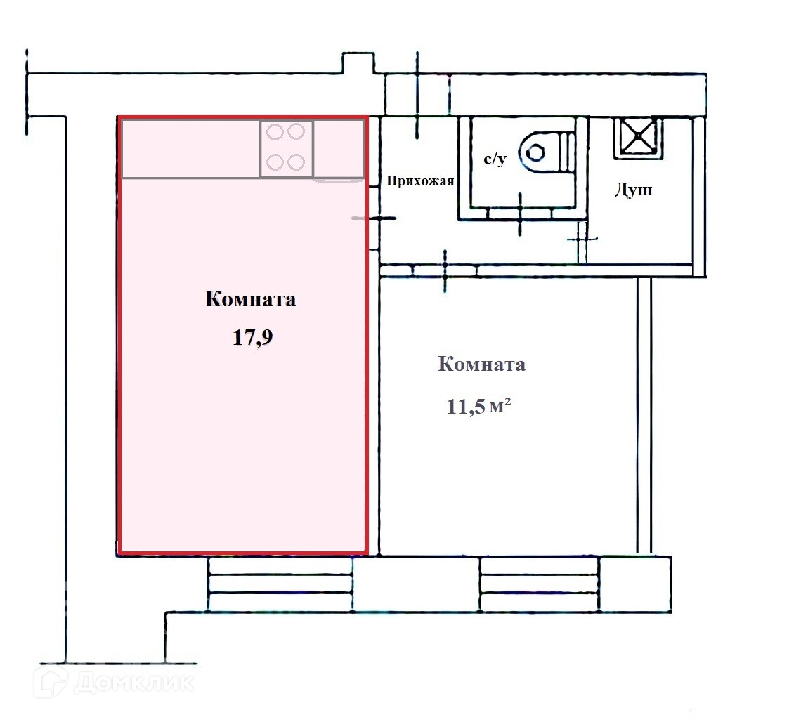 Общая площадь 17.9 м2