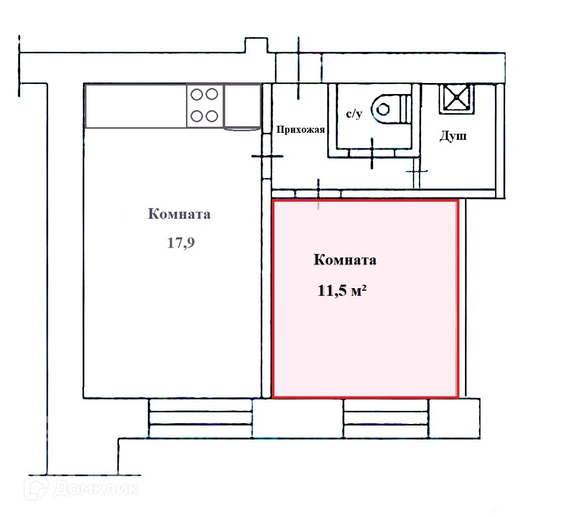 Общая площадь 11.5 м2