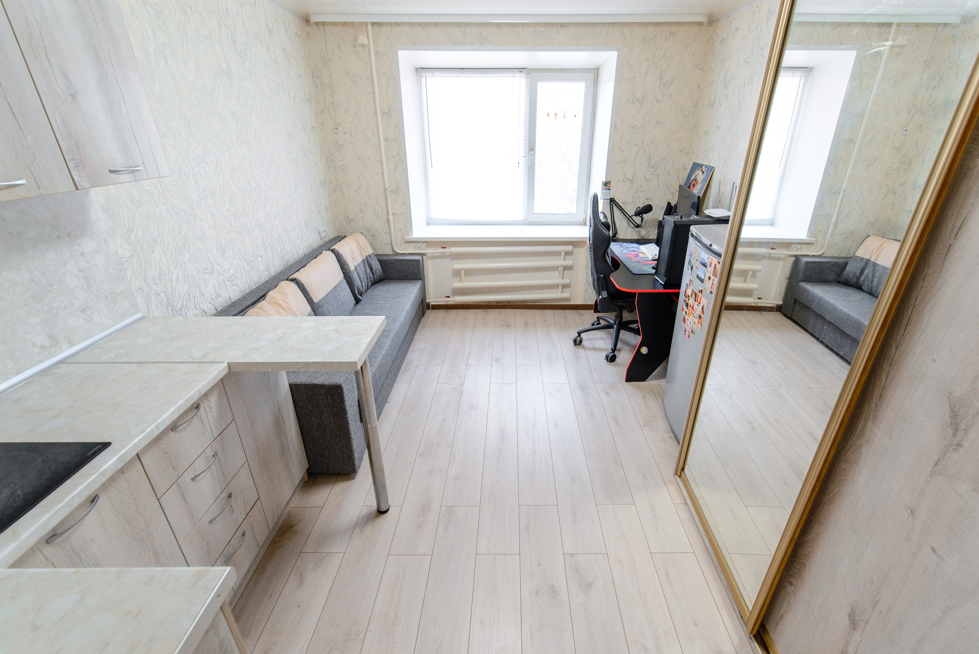 Продам комнату (НЕ ДОЛЯ!) в отличном состоянии. Остается корпусная мебель: кухонный гарнитур и шкаф купе. Вода подведена - можно установить стиральную машинку. Рядом остановка Бердская, во дворе магазин Ярче.