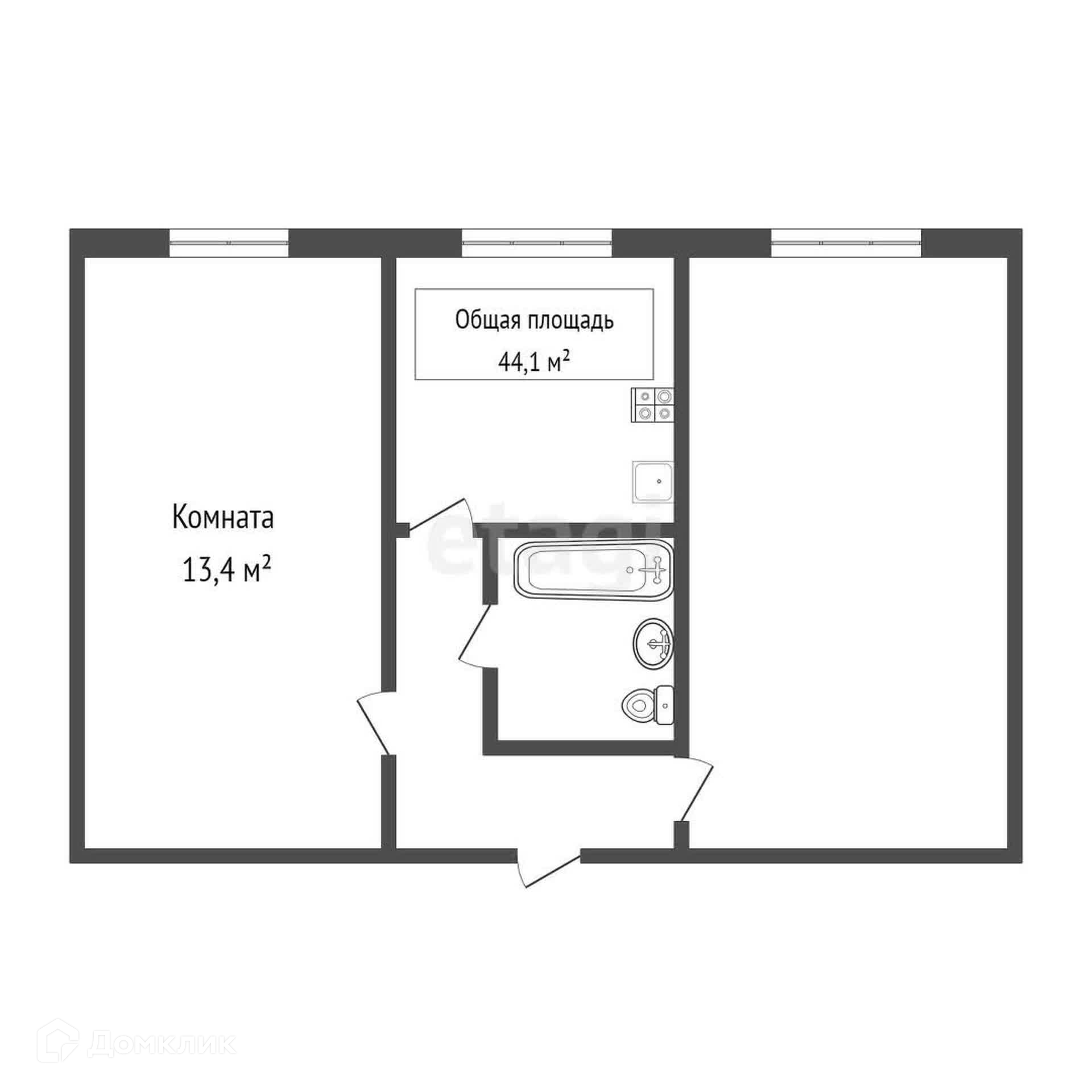 Общая площадь 13.4 м2