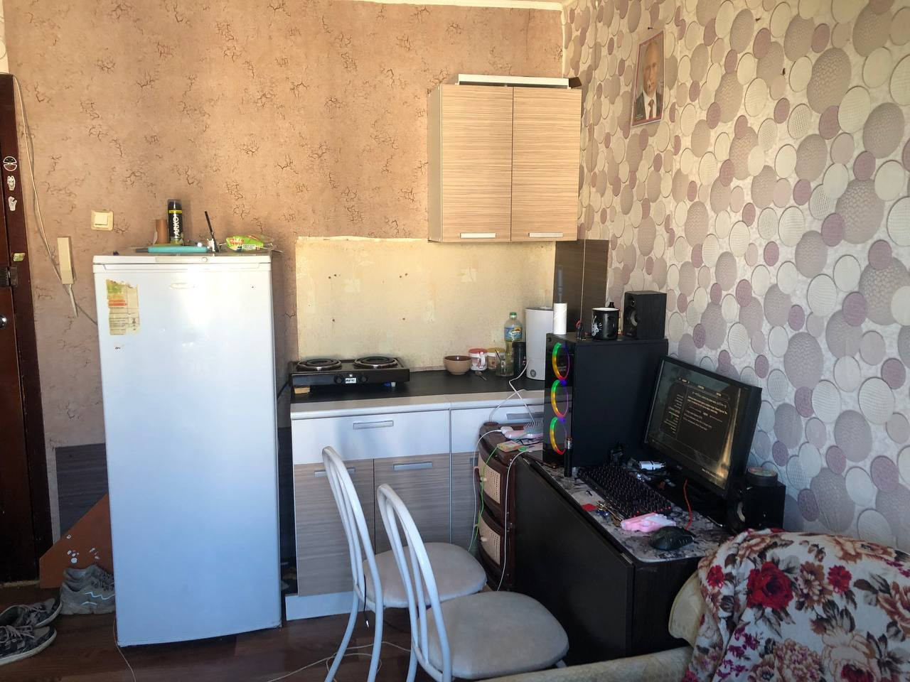 Продается комната в секции площадью 10.6 кв. В секции 4 комнаты. Подойдет для проживания студенту или сдачи в аренду. Рядом с домом остановка общественного транспорта, напротив торговый центр. Доля. Торг уместен.
