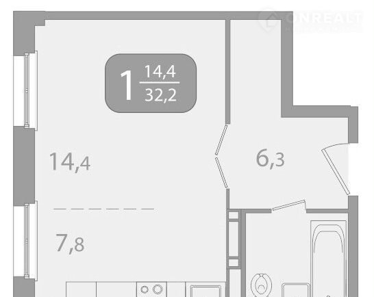 Общая площадь 32.3 м2