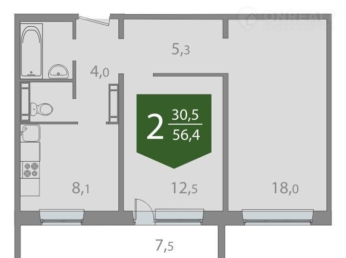 Общая площадь 56.4 м2