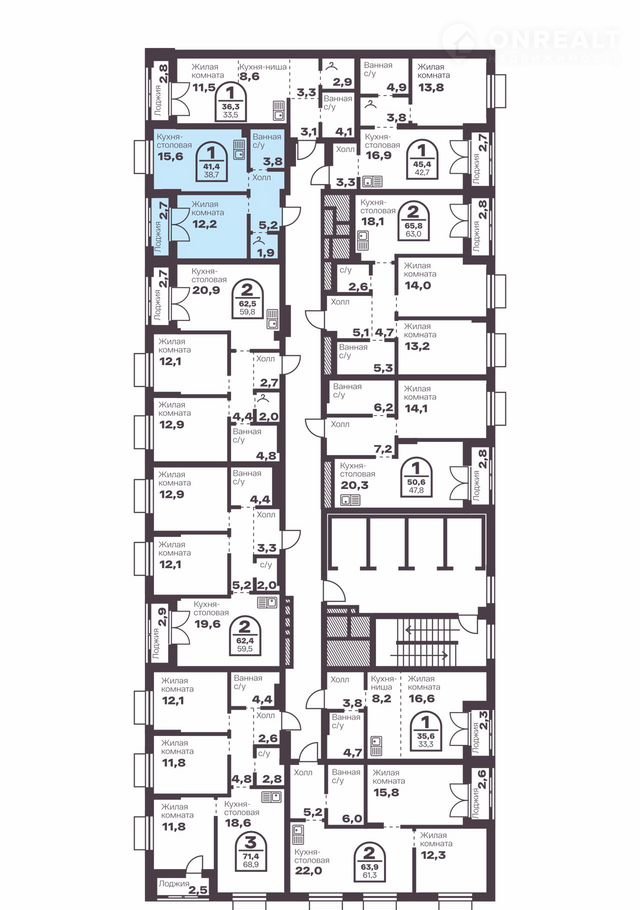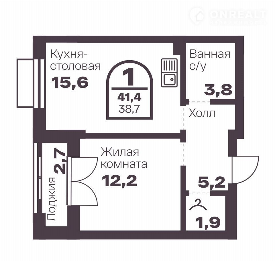 Общая площадь 38.7 м2