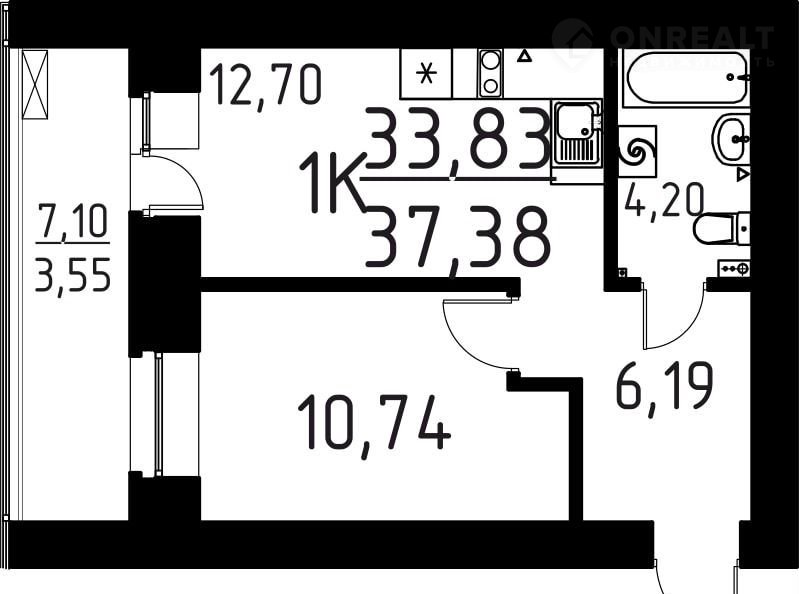 Балкон, лоджия 1 лоджия