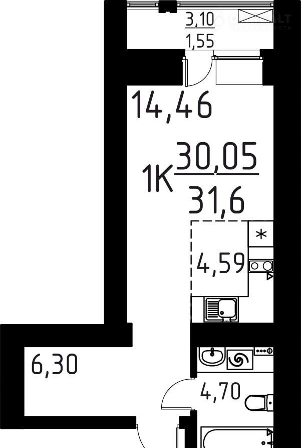 Общая площадь 31.6 м2